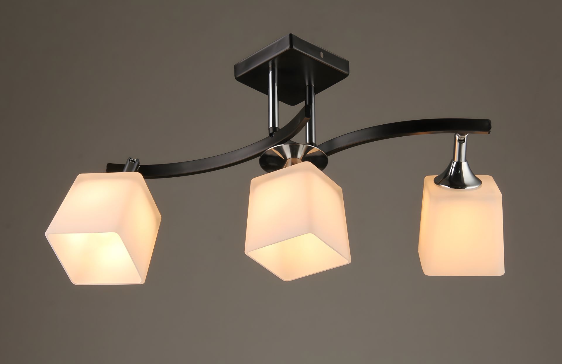 Найважливішою особливістю цієї люстри є три плафони зі скла білого кольору квадратної форми .Люстра оснащена цоколем E27, що дозволяє вам вибирати лампочки до 60 Ватт, надаючи можливість створити бажану атмосферу - чи то яскраву та енергійну, чи теплу та затишну.