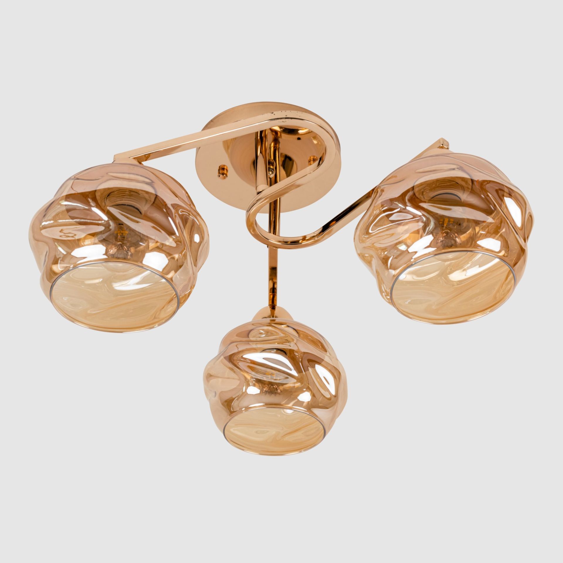 Плафони лампи мають колоподібну нерівну форму і виготовлені зі скла в золотистому кольорі. Ця нерівна форма додає особливої привабливості і оригінальності до плафонів. Золотисте скло надає приємного теплого відтінку і створює затишну атмосферу освітлення.