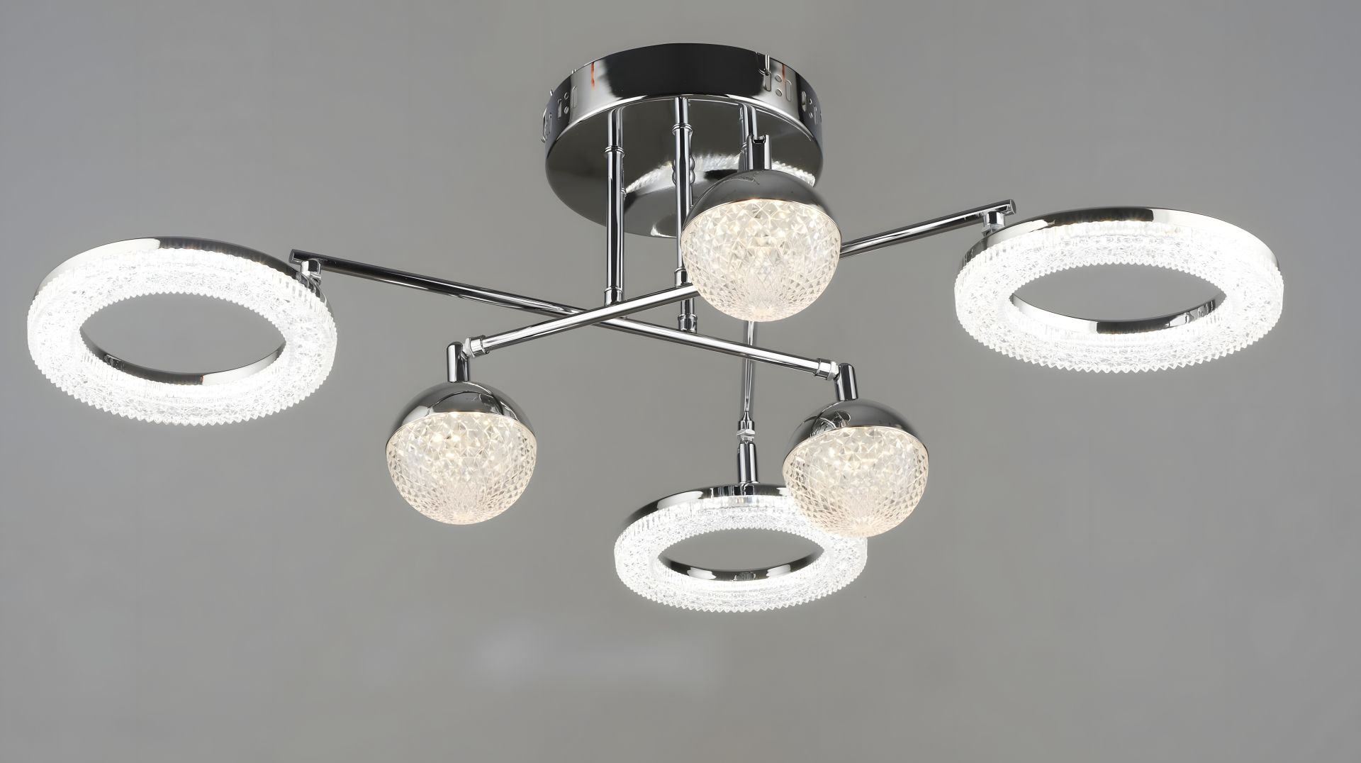Шість акрилових плафонів – створюють м’яке, приємне для очей світло, яке рівномірно освітлює простір.