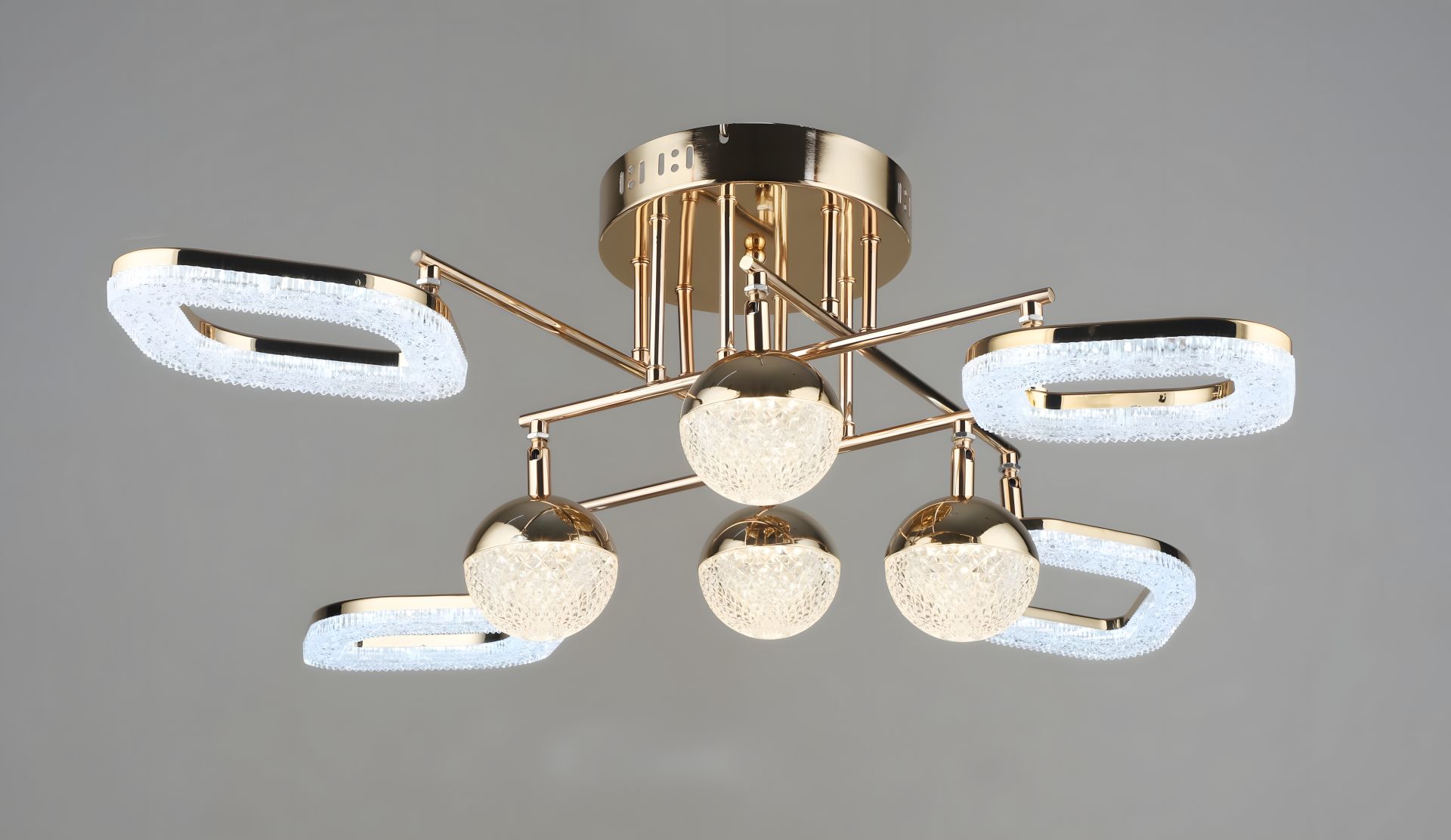 Вісім акрилових плафонів – створюють м’яке, приємне для очей світло, яке рівномірно освітлює простір.