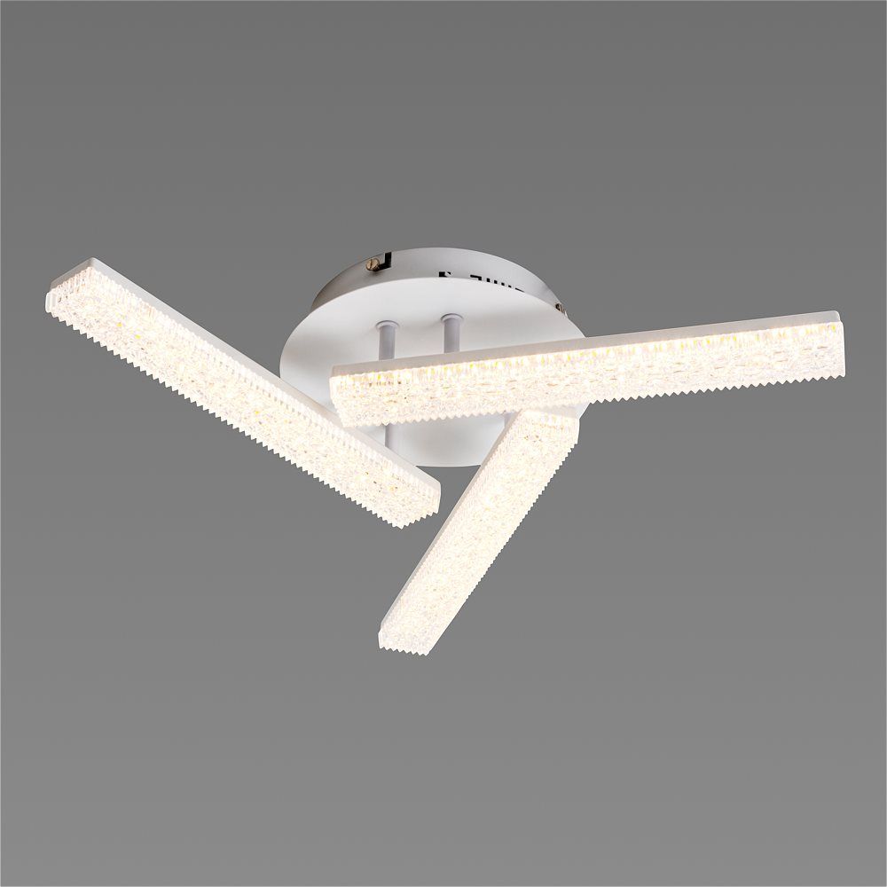 Ця люстра виготовлена з високоякісного акрилу та має три елегантних плафонів прямокутні білого кольору. Її дизайн виразно демонструє сучасність та елегантність. І що найважливіше, вона призначена для кімнат, де кожен сантиметр має значення, розміри люстри - 520 мм довжина, 520 мм ширина і 90 мм висота