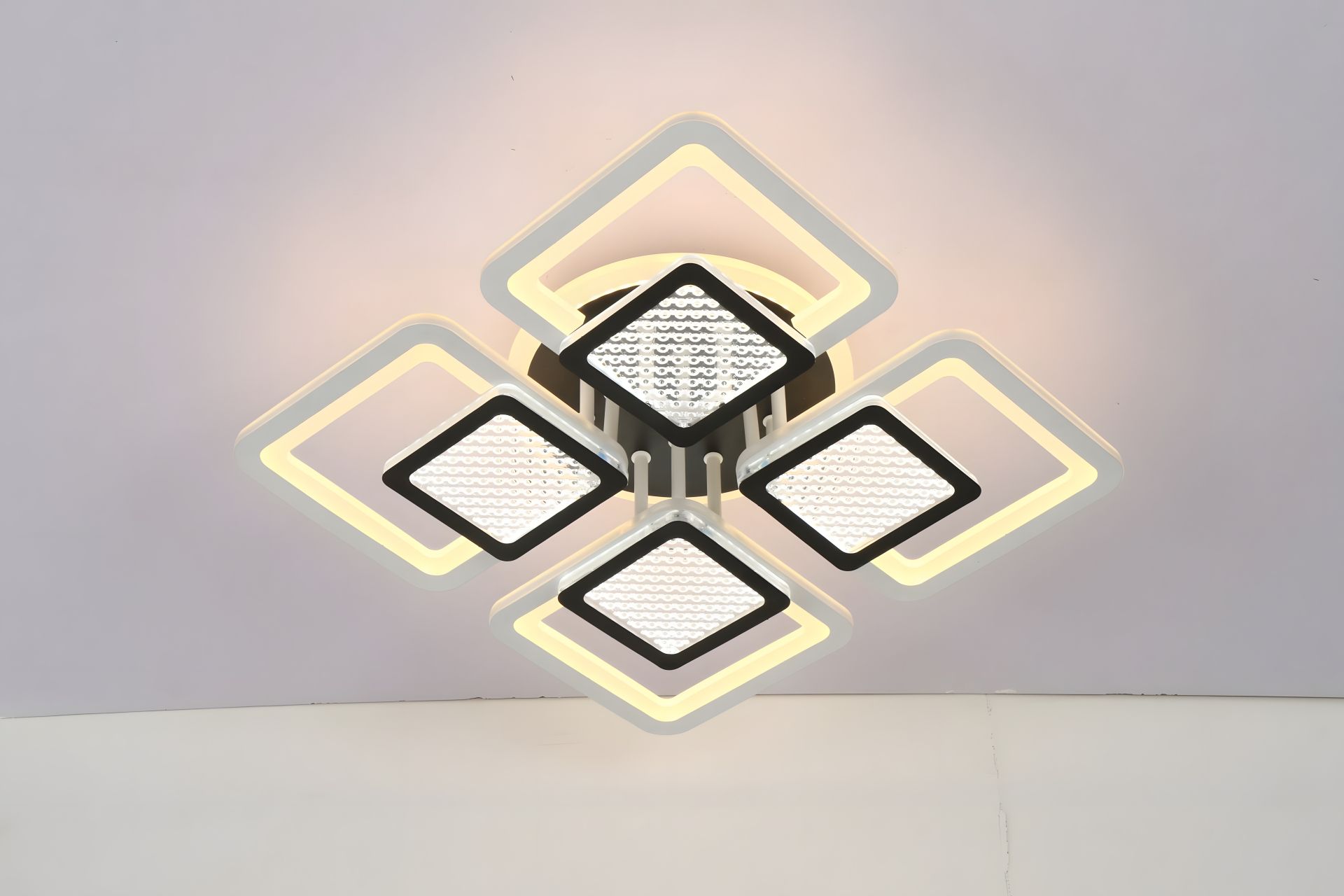 Діодна стрічка: Діод Постуючи кількість джерел світла: 5 Довжина, мм: 430 Ширина, мм: 430 Висота, мм: 95 Рамний матеріал: Акрил Матеріал: Акрил Світло Джерело: Світлодіодна ленна Фрум Світло: розсіюється світловий тип кріплення: потужність живлення, W: 168 Тип: Універсальний Стиль: Декоративна форма Lustra: Недондійне використання Номери: Для житлових залів: для житлових залів