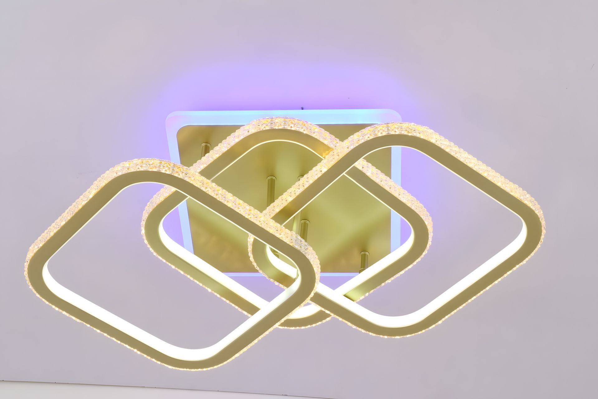 Довжина 650мм,ширина 375мм мм та висота 160 мм роблять цю люстру ідеальним вибором для кухні, спальні, вітальні або кабінету. Золотистий каркас з металу виглядає стильно та елегантно. Три плафони квадратні з акрилу в золотому кольорі розсіюють світло рівномірно, створюючи атмосферу затишку та гармонії.