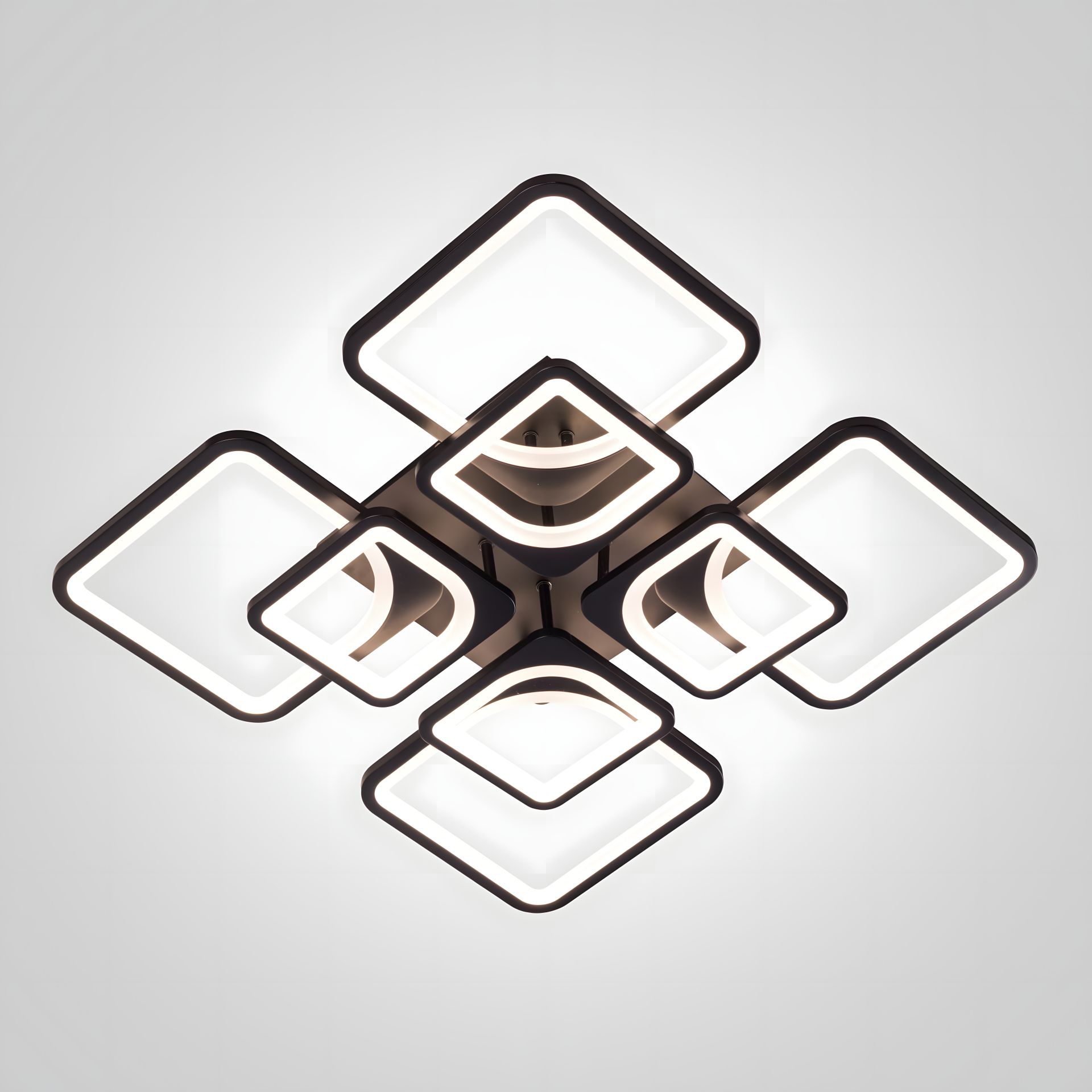 Люстра світлодіодна V K39047-4+4 BK — це стельовий світильник у чорному виконанні з елементами квадратноъ форми, що поєднує сучасний стиль та функціональність. Складається з чотирьох більших і чотирьох менших світлових елементів, утворюючи двоярусну композицію. Джерелом світла є вбудована LED-стрічка, яка забезпечує рівномірне розсіювання світлового потоку по всій площині люстри.