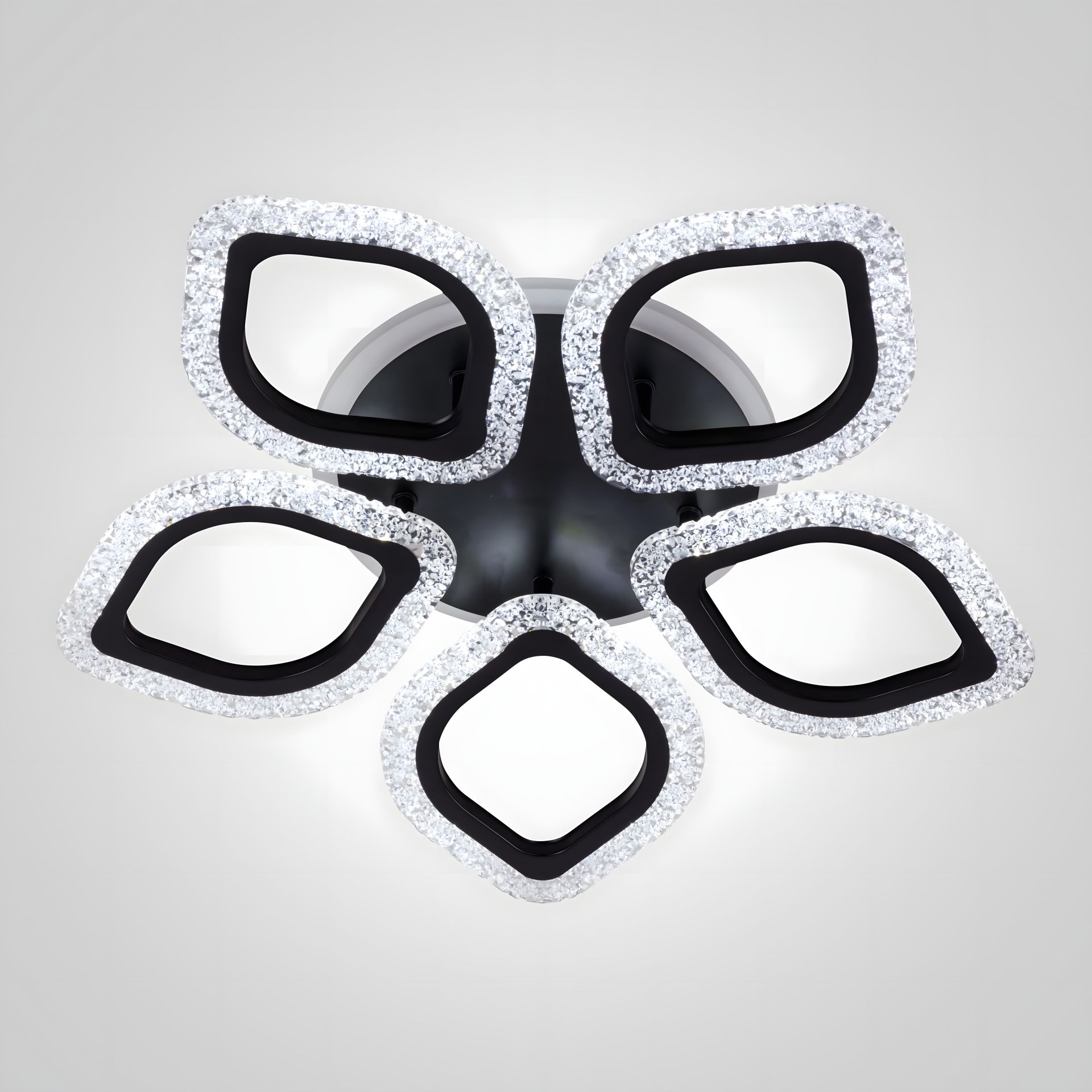 Люстра світлодіодна INTEREES IS K39207-5-TL BK — стельовий накладний світильник у чорному кольорі з сучасним дизайном. Модель складається з п’яти світлових елементів, що утворюють декоративну композицію для рівномірного заповнення світлом простору.