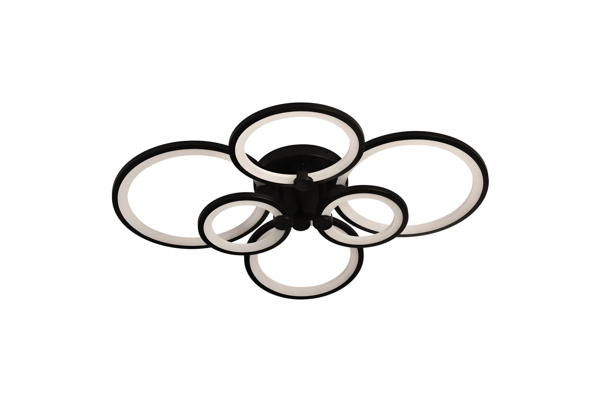 Шість плафонів з акрилу круглі чорного кольору створюють чудовий ефект, рівномірно розсіюючи світло завдяки вбудованим діодам. Потужність 114 Ватт гарантує достатню яскравість для будь-якого приміщення.