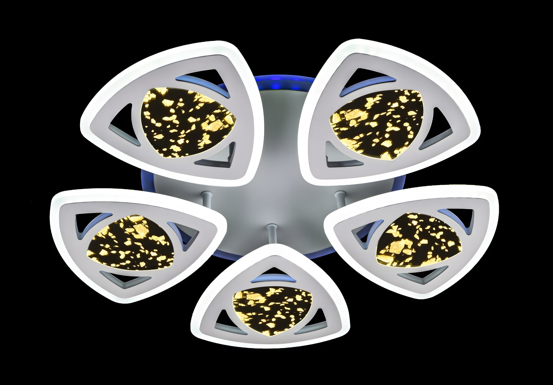 Завдяки своїй формі, яка нагадує квітку, вона стане чудовим доповненням до інтер'єру. Люстра має 5 білих плафонів, які розсіюють світло рівномірно. У комплекті йде пульт, який дозволить вам зручно керувати освітленням.