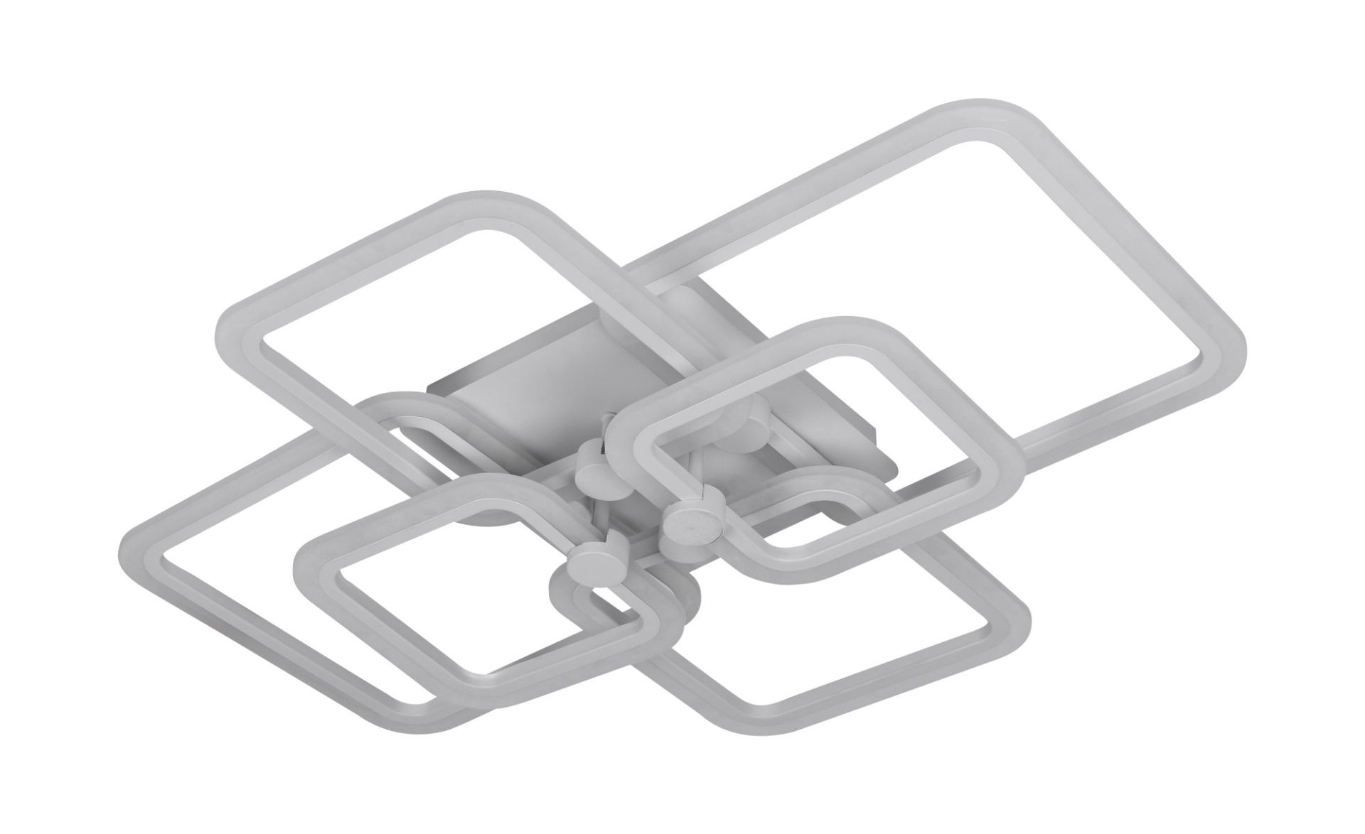 Люстра має витончений і лаконічний вигляд, що підкреслює її сучасність. Основою є металевий корпус з якісним покриттям, яке забезпечує довговічність та естетичну привабливість. Вбудовані світлодіодні елементи рівномірно розподіляють світло, створюючи комфортне освітлення без різких тіней.