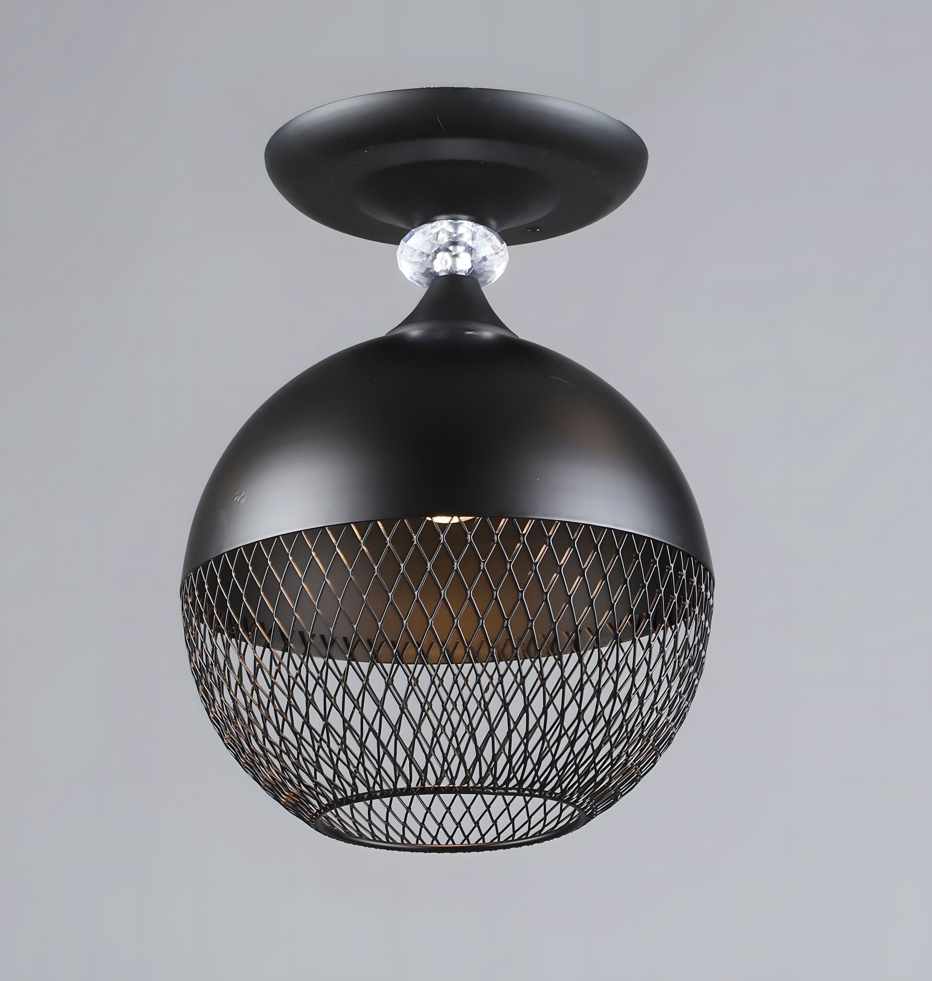 Дизайн: кругла форма з чорного металу надає люстрі сучасного вигляду, а сіточка по поверхні додає вишуканого вигляду.