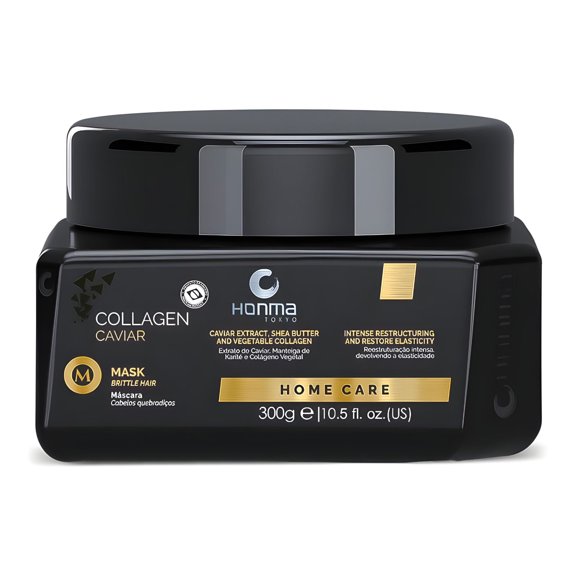 Маска з колагеном Honma Tokyo Caviar Care Mask розроблена для ламкого волосся, яке зазнало процедур хімічної трансформації. Активна формула засобу збагачена рослинним колагеном, екстрактом ікри та олією інків. Продукт закриває кутикули волосся, посилюючи та зберігаючи весь догляд, який забезпечує лінія. Маска ефективно відновлює волосся, зміцнює волокна, робить волосся шовковистим і надзвичайно м'яким, повертаючи йому втрачену життєву силу. Показана для всіх типів волосся, особливо для ламкого та позбавленого еластичності.