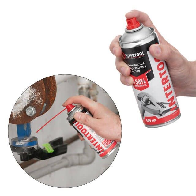 Мастило INTERTOOL допомагає деталям та механізмам працювати справно та ефективно! Завдяки активним речовинам, що входять до складу, перевершило показники традиційних мастильних речовин та масел, які не використовують проникаючі, очищаючі компоненти у своєму складі.