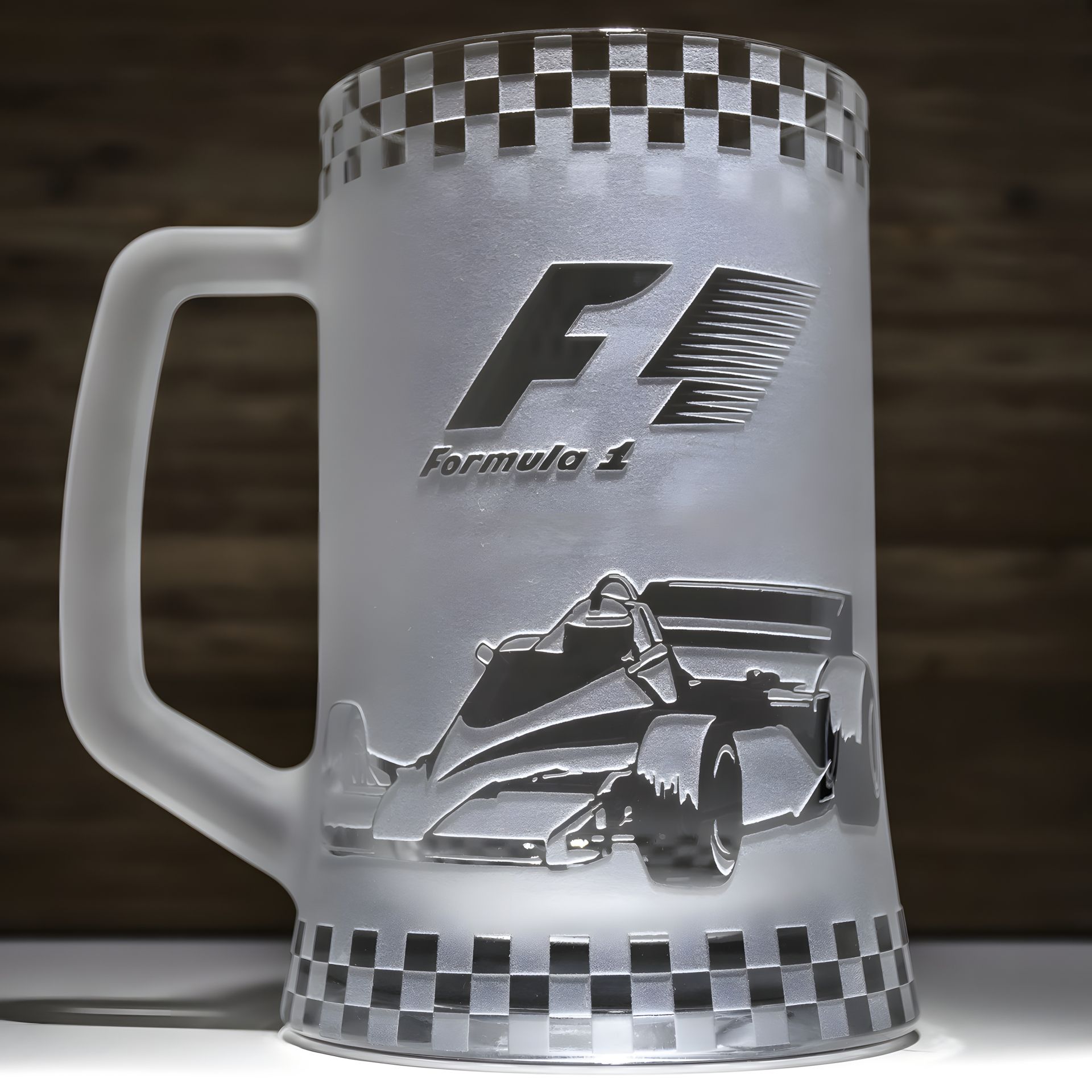 Кухоль для пива з ручним механічним гравіюванням Формула 1, матова у подарунковій коробці