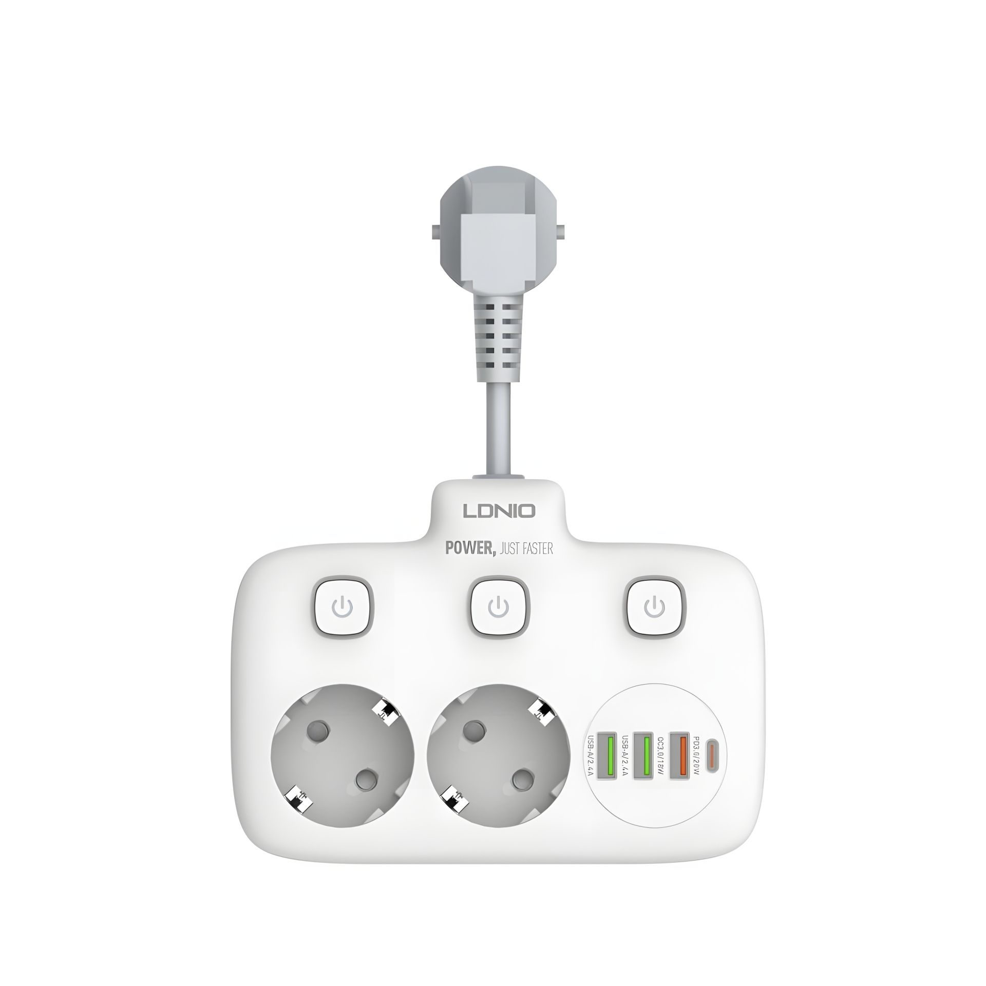 Мережевий подовжувач LDNIO SE2435 2 EU ports /1 PD/1 QC/2 auto ID Білий