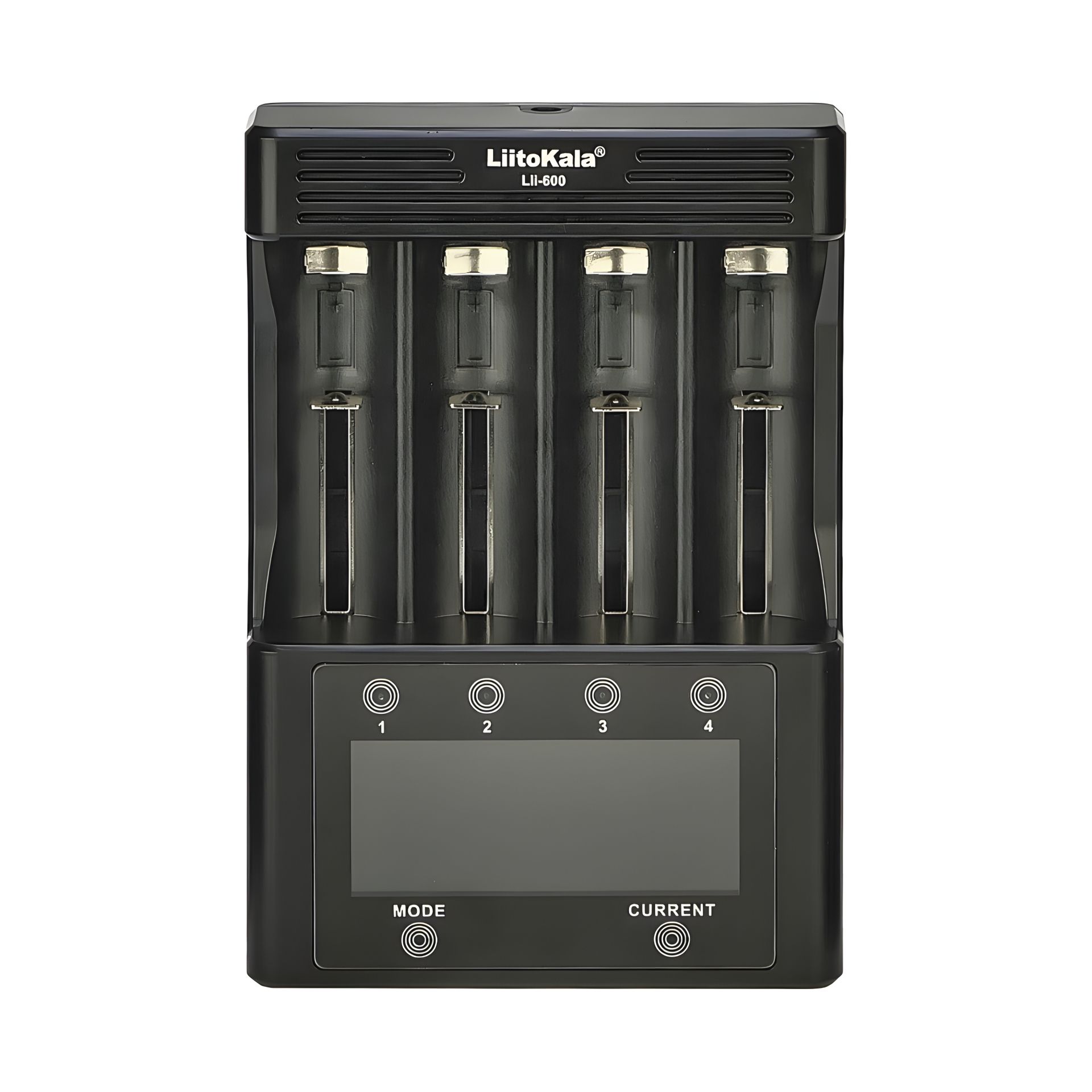 Інтелектуальний зарядний пристрій LiitoKala Lii-600 – це багатофункціональний зарядний пристрій із сенсорним керуванням, функцією заряду, розряду, тестування акумуляторів, інформативним LCD дисплеєм на якому відображається ємність, внутрішній опір, відсоток заряду та температура акумулятора. Це найпередовіша модель у ряді зарядних пристроїв компанії LiitoKala, яке може одночасно заряджати струмом до 3А від 1 до 4 циліндричних акумуляторів різного хімічного складу – Li-Ion, NiCd, NiMH практично всіх типорозмірів акумуляторів АА, ААА, С (R14), A, SC, 14500, 16340, 18350, 18650, 21700, 20700, 26650 та інші.