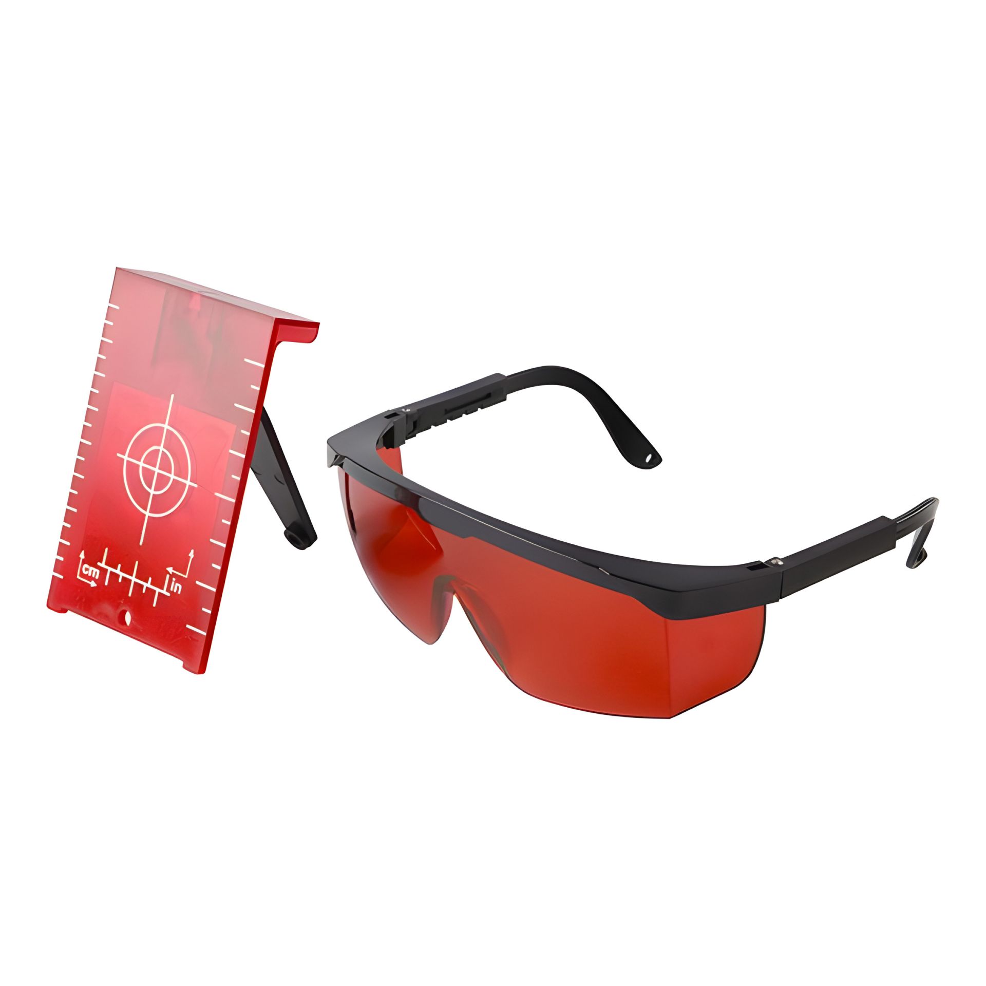 У комплекті до мішені передбачені окуляри відповідного кольору, які є незамінними у роботі з лазерним обладнанням, оскільки збільшують дальність роботи з приладом та видимість лазерних ліній усередині та зовні приміщень. Це корисний комплект на всі випадки ремонту та ідеальний для робіт під час встановлення підвісних стель.