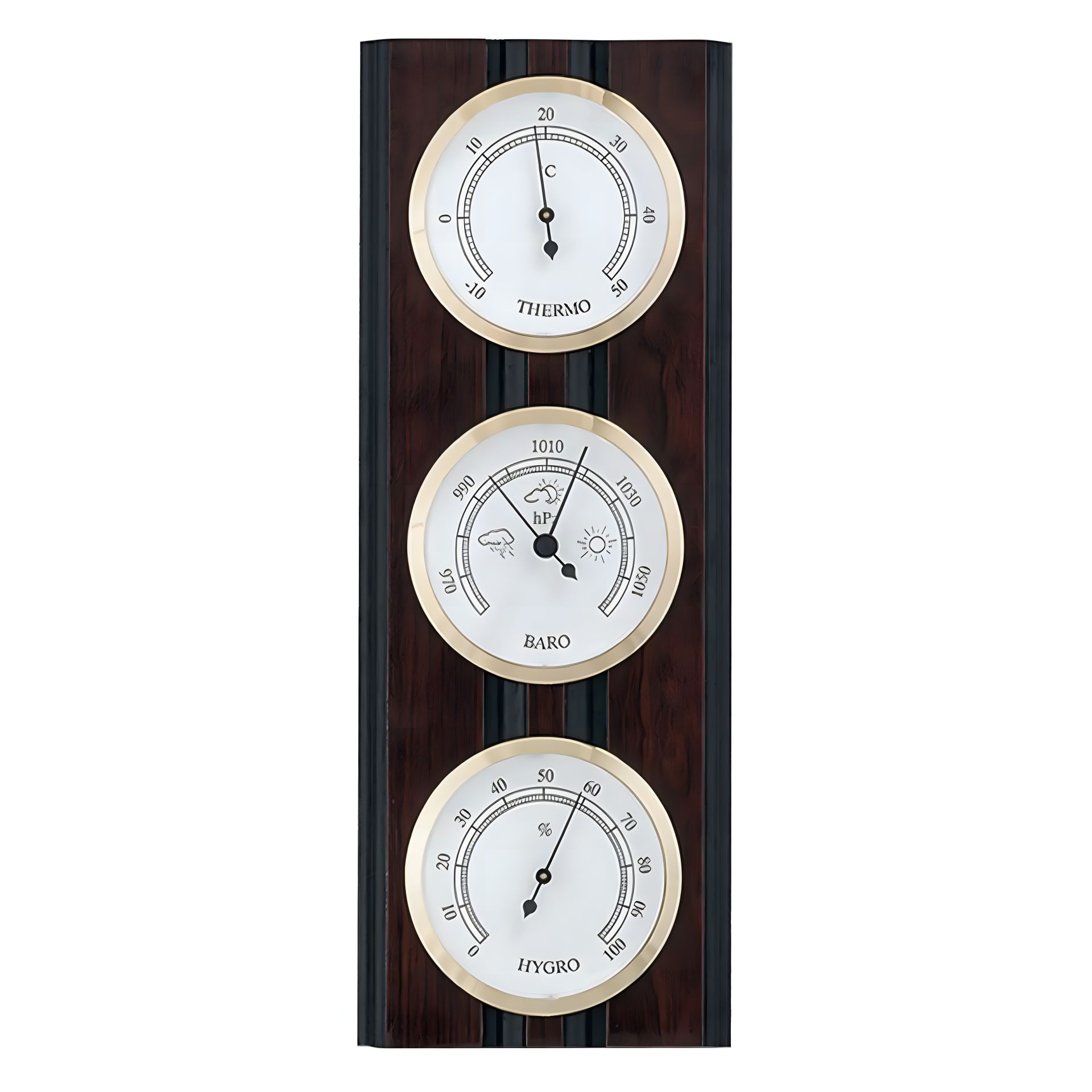 Настінна метеостанція Moller 203975 Mahagony складається з барометра із великим циферблатом, гігрометра та термометра, об'єднаних у дерев'яному корпусі. Вся продукція Moller виробляється з твердих порід дерева, а саме з бука, поверхня шліфується, після чого корпус покривається спеціальними складами лаку для надання необхідної довговічності, кольору та текстури деревини червоного дерева. Барометри Moller адаптовані для нашого ринку та мають шкалу не тільки в мілібарах (гектопаскалях), але й у міліметрах ртутного стовпа. Якість та надійність продукції Moller підкріплені п'ятирічною гарантією.