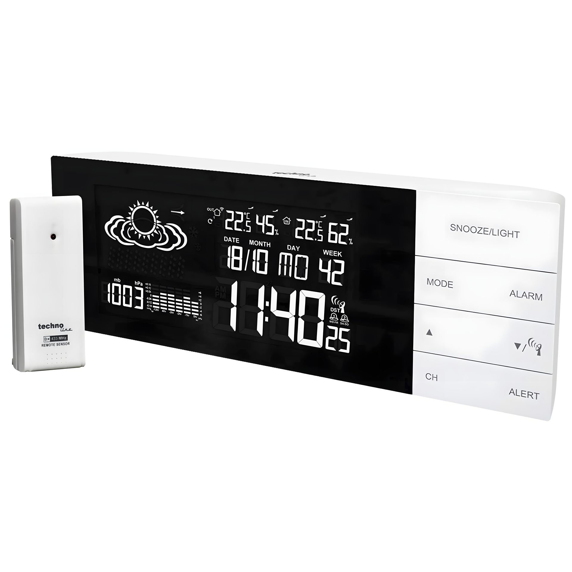 Метеостанція оснащена бездротовим датчиком, який здійснює точне вимірювання температури та вологості. Ви зможете підключити до 3 додаткових датчиків одночасно, що дозволяє вимірювати показники у різних місцях, наприклад, в різних кімнатах чи зовні приміщення. А за допомогою функції ALERT, метеостанція повідомить вас в разі виходу за визначені межі температури в зоні розташування датчика. Окрім того, метеостанція вимірює тиск повітря і надає прогноз погоди в графічному вигляді на період до 24 годин. Ви зможете планувати свої дії заздалегідь, з урахуванням змін погоди, що спрогнозованих станцією. Технологія синхронізації часу з радіосигналом точного часу DCF77 гарантує, що відображення часу на метеостанції буде завжди точним. Метеостанція також має вбудований будильник з функцією відкладення сигналу (snooze).