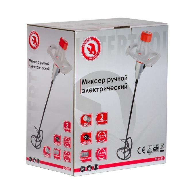 Міксер ручний електричний INTERTOOL DT-0130 призначений для перемішування різних будівельних сумішей, компаундів та фарб.