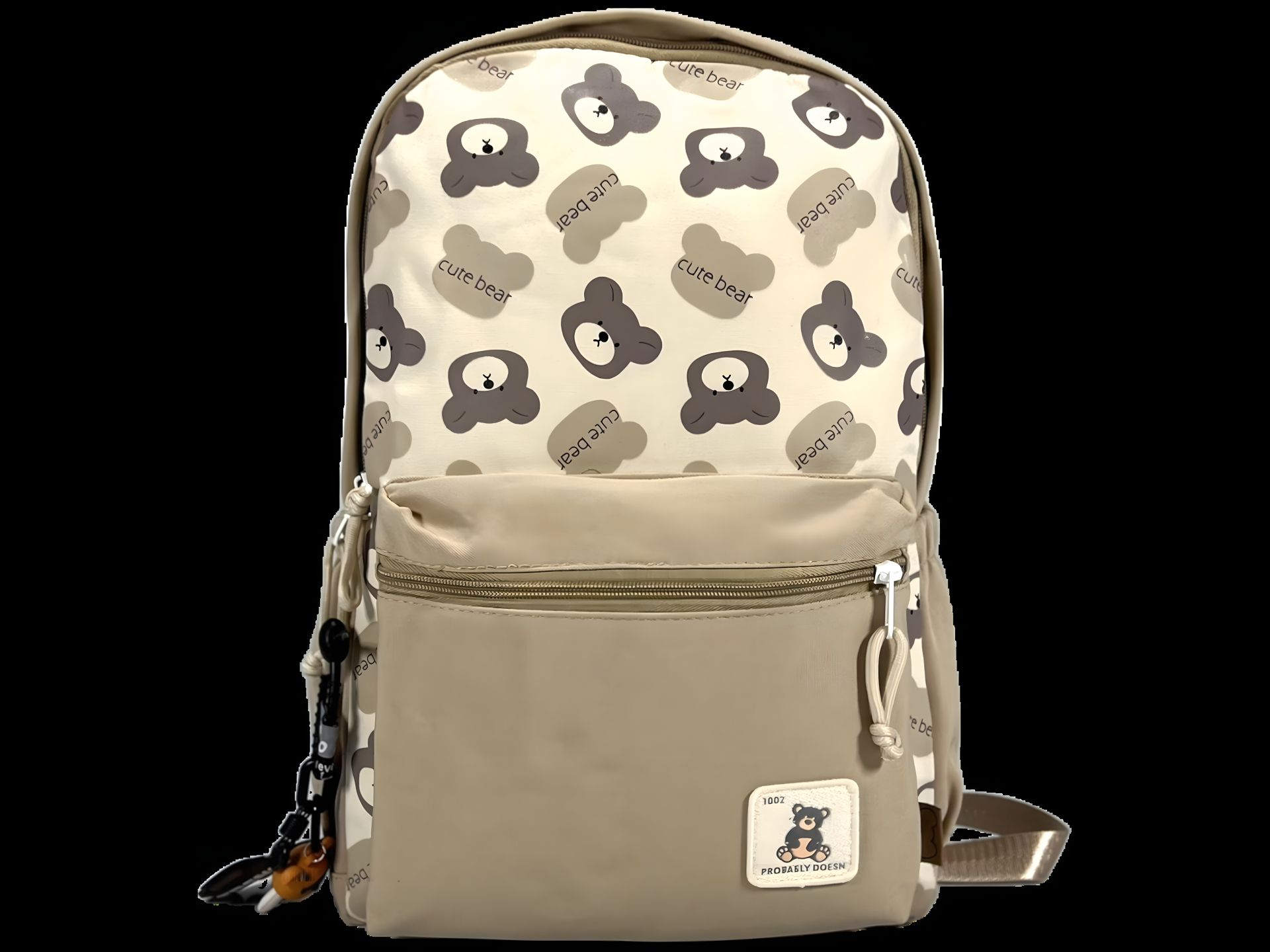 Елегантний дизайн та оригінальний принт: Цей рюкзак з висотою 41 см та розмірами 41*28*13 см вражає своїм милозвучним дизайном, який прикрашений чарівним медвідем. Цей стильний аксесуар у корейському стилі підкреслить вашу індивідуальність та додасть вашому образу шарму та оригінальності.