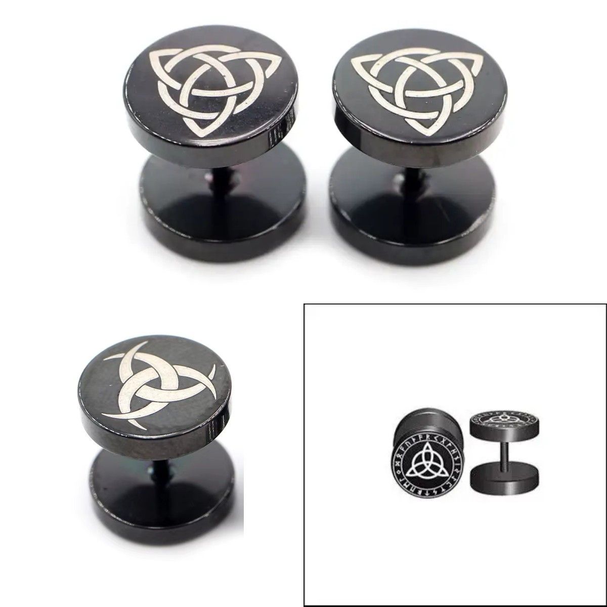 Чоловічі сережки-штанги з амулетом Трикветр, Кельтський вузол, 1 шт.