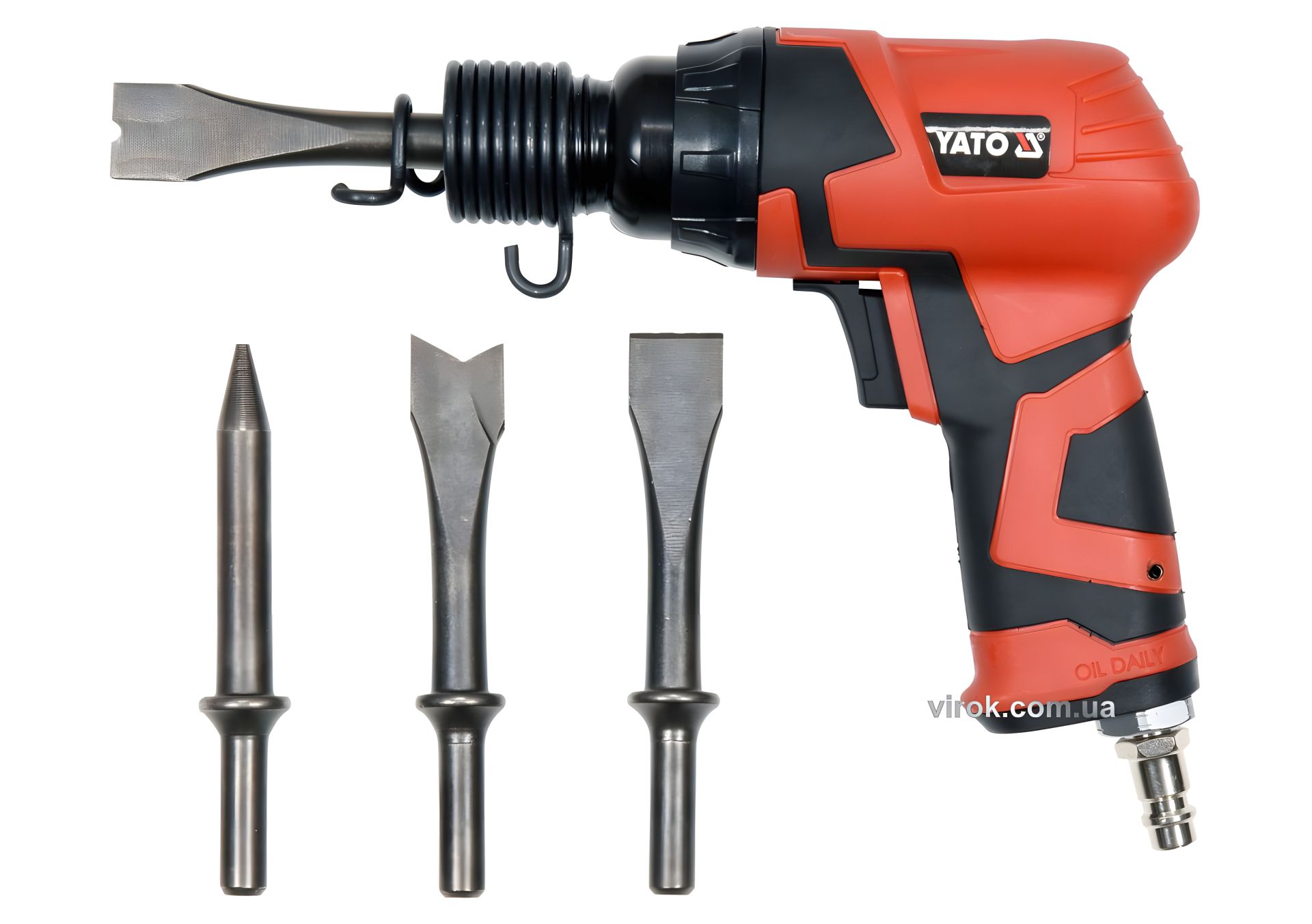 Молоток відбійний пневматичний YATO: спож. повітря - 113 л/хв, тиск 6.3 Bar + 4 долоти