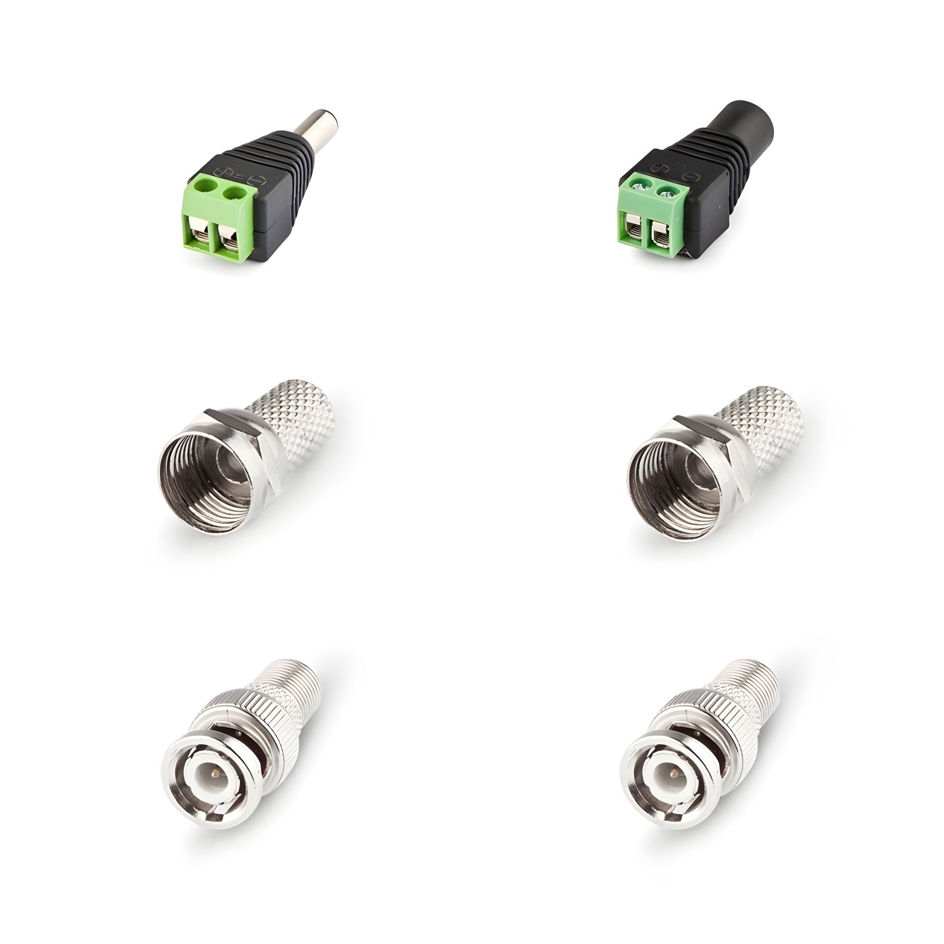 Готовий комплект роз'ємів і перехідників. Застосовується в системах відеоспостереження для підключення камери по коаксіальному і комбінованого кабелю.