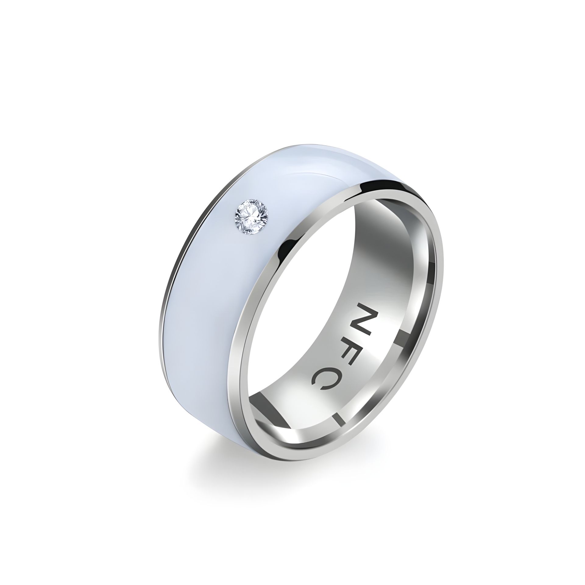 Чоловіче кільце-стінь біле з каменем розмір 19-22