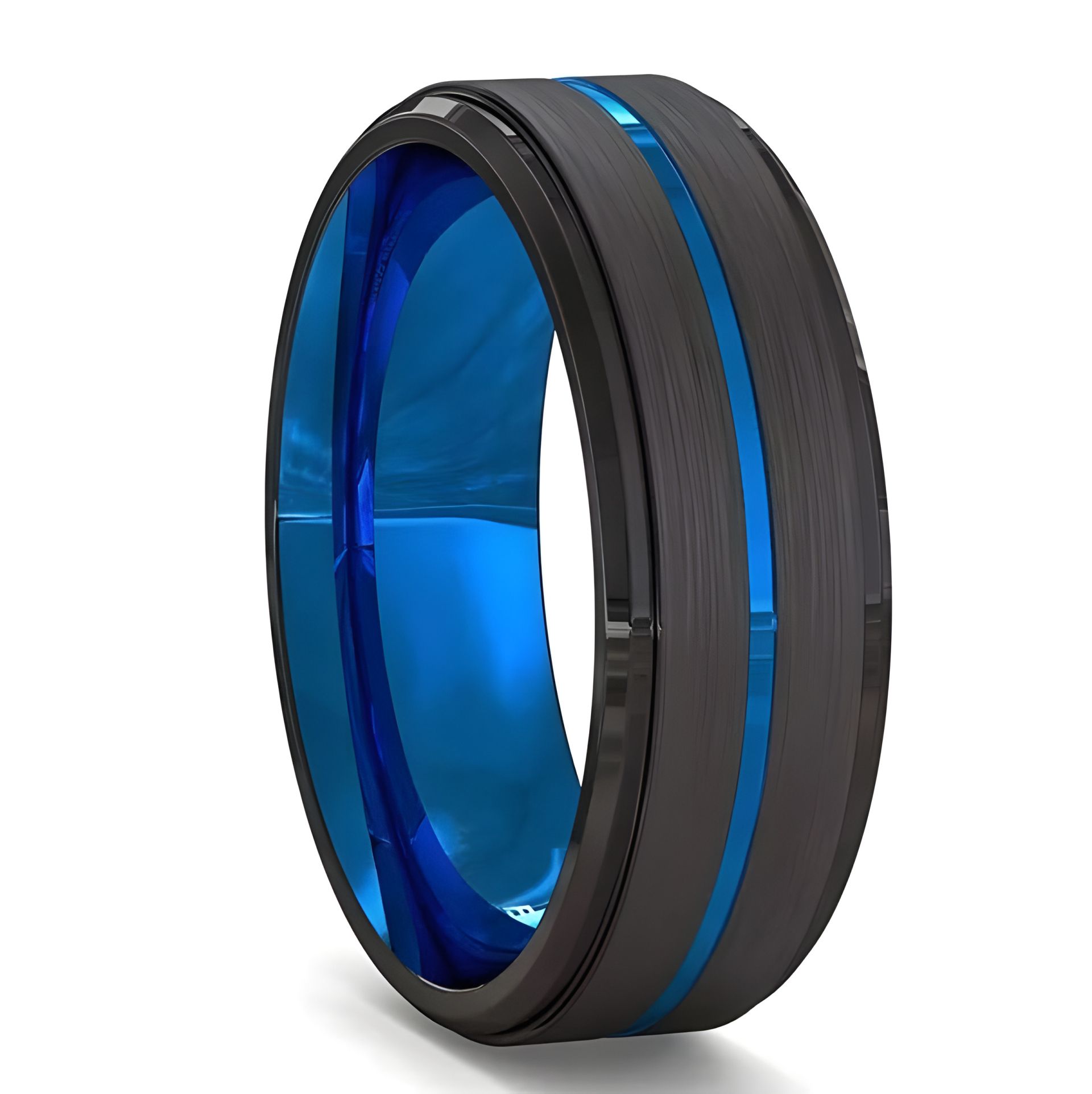 Чоловіче жіноче кільце біжутерія з акриловою синьою вставкою розмір 16-23