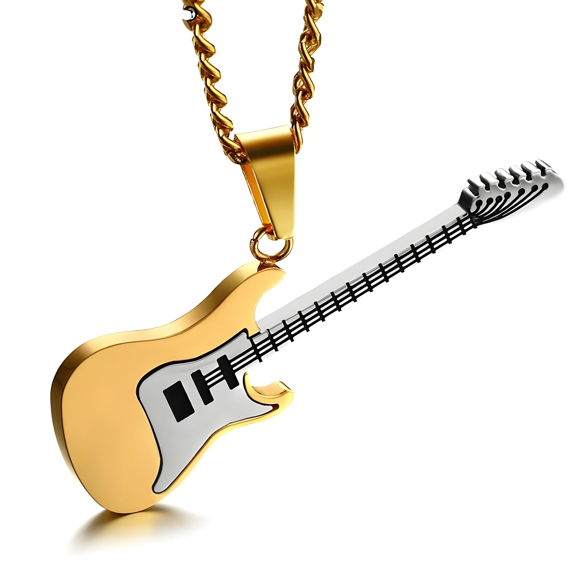 Чоловічий кулон, ланцюжок, гітара, золотистий, Fender Stratocaster