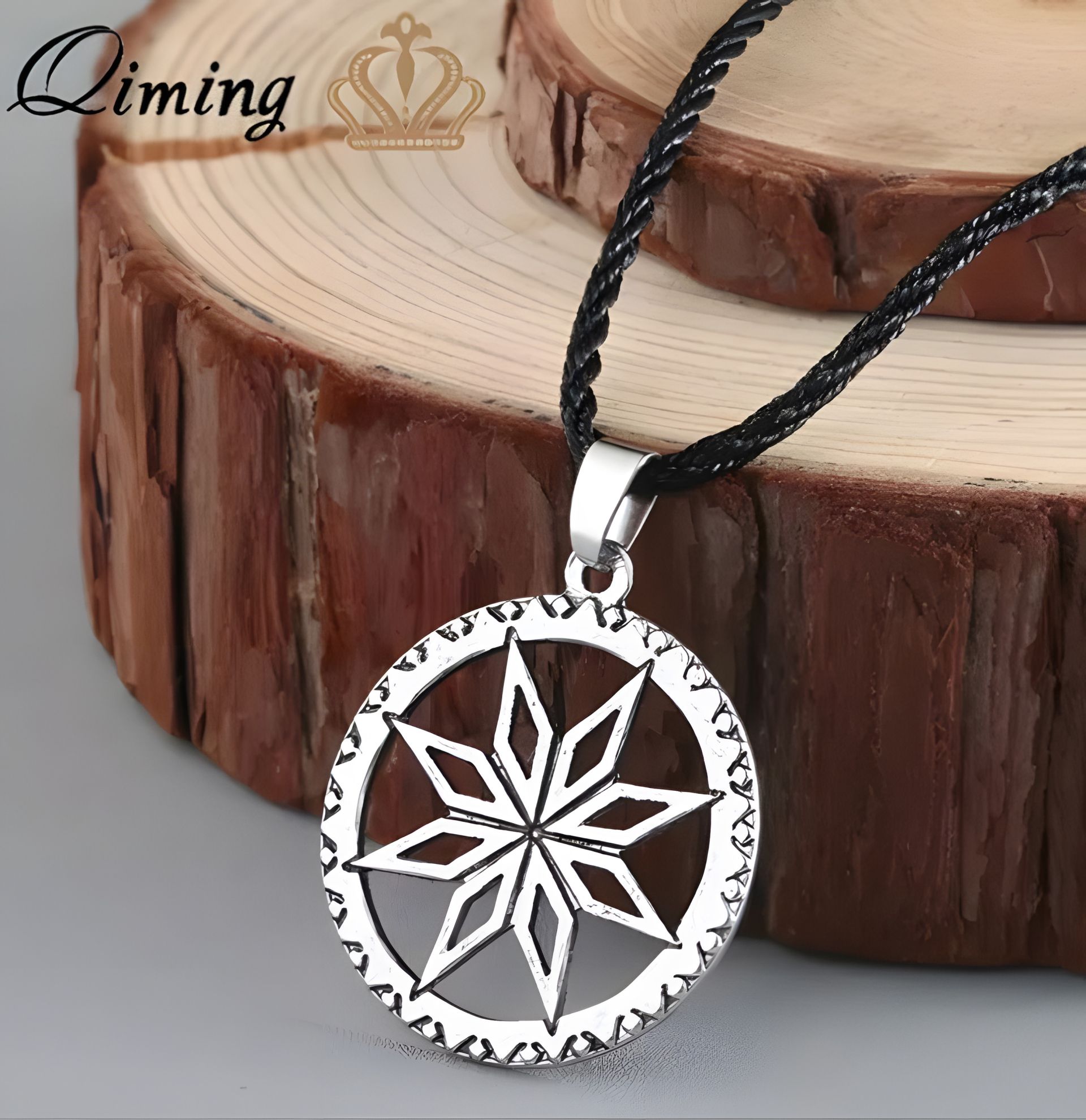 Чоловічий жіночий кулон слов'янський оберег Алатир прикрашання біжутерія хром.