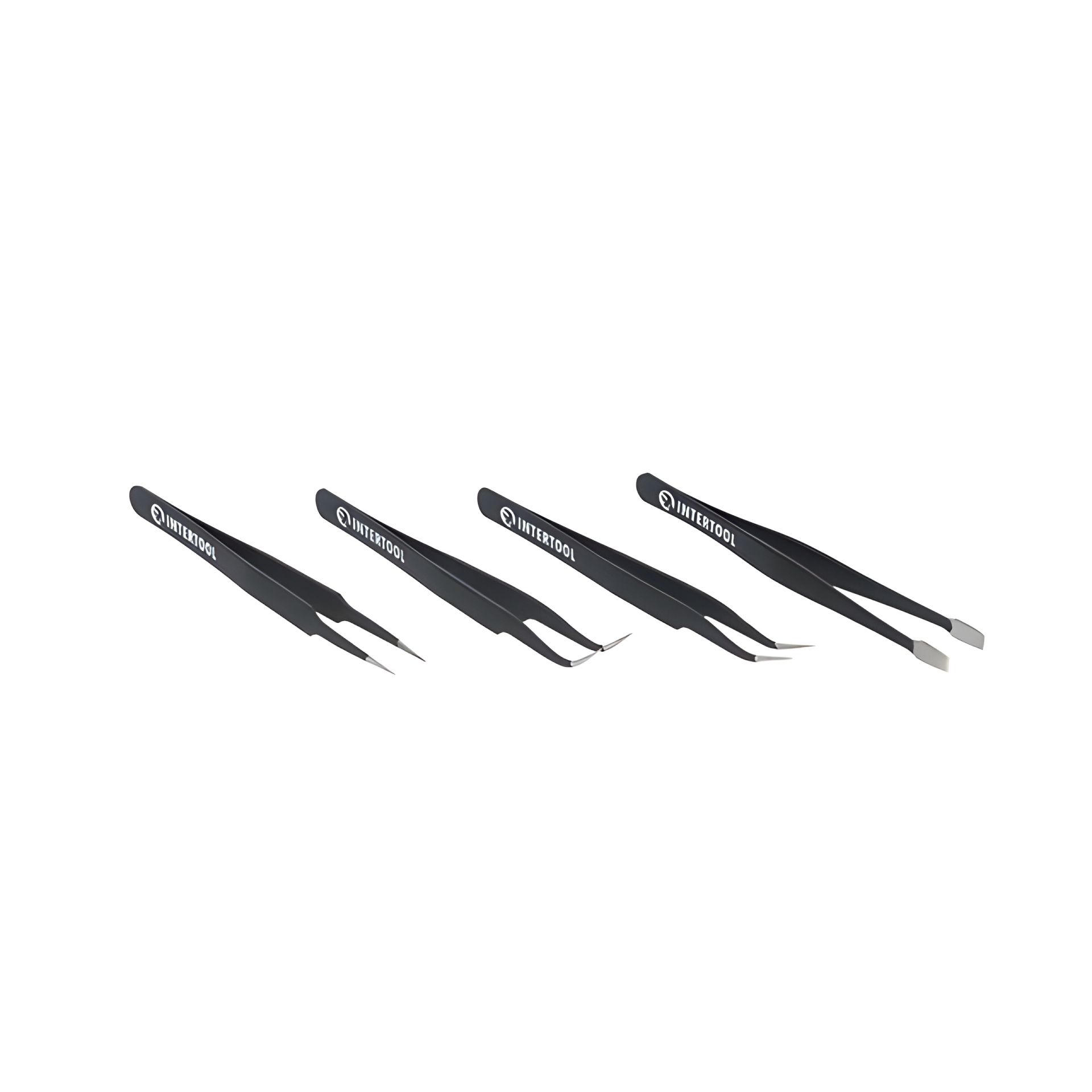 Антистатичних пінцетів набір, 4 шт. INTERTOOL NT-6001