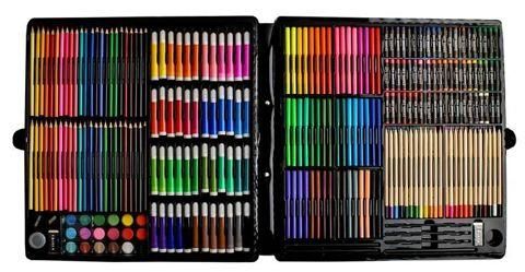 288 ЕЛЕМЕНТІВ - за допомогою величезного вибору з 72 крейди, 96 маркерів, 60 масляних пастелей, 18 акварельних фарб, 3 олівців, 3 кистей з ємністю для води, 30 канцелярських скріпок, точилок і 2 ластиков ми можемо легко створити найвишуканіші, творчі та оригінальні роботи.
