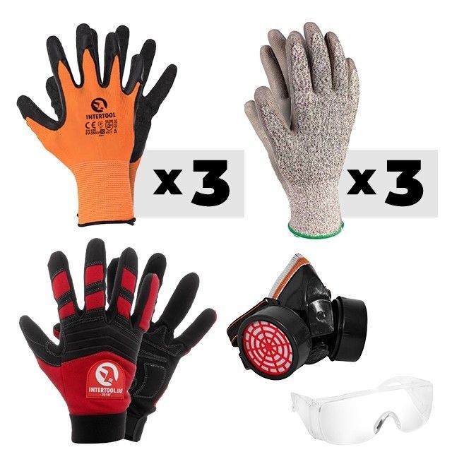 Жодна робота не може уникнути мінімального набору засобів індивідуального захисту. Для цього ми поклали в набір три типи рукавичок, захисні окуляри та респіратор.