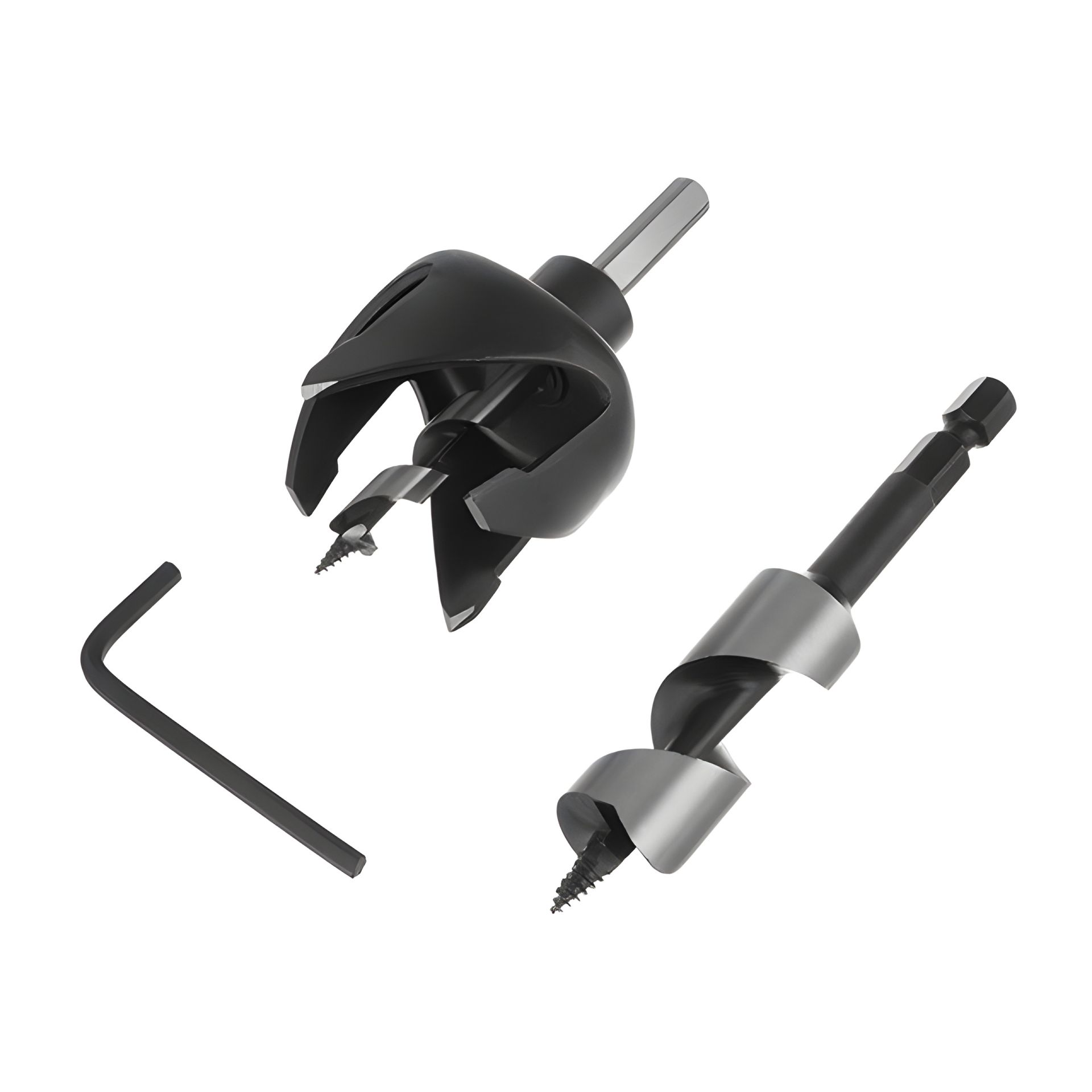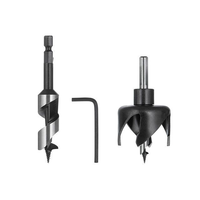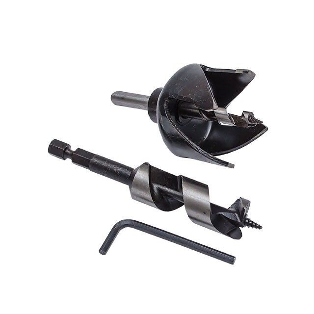 Набір призначений для створення отворів в деревині, ідеально підходить для свердління ДВП, ДСП, МДФ, фанери тощо. Коронка використовується під отвір для ручки, діаметром 54 мм, а свердло, діаметром 22 мм - для отворів під язичковий замок (засувку).