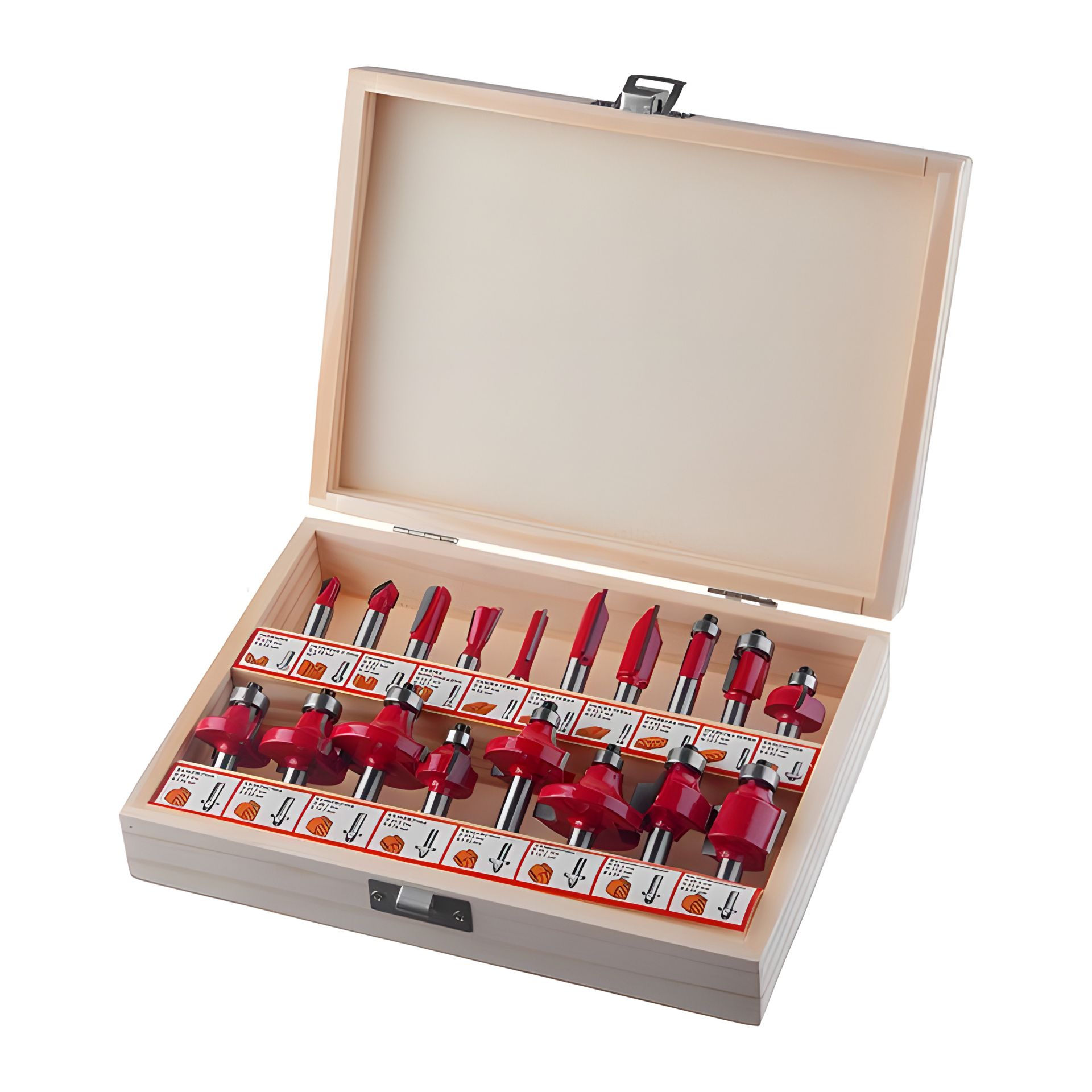 У наборі HT-0073 представлені кілька видів фрез, які найчастіше бувають необхідні у побуті. Багато фрез, так чи інакше, призначені в основному для виробництва меблів, віконних рам, паркету тощо. Такими фрезами в домашніх умовах ми не користуватимемося самостійно. А ось, врізати замок у дерев'яні двері, зробити своїми руками табурет, полицю для книг - можна виконати і в домашніх умовах завдяки досить простій формі фрез.