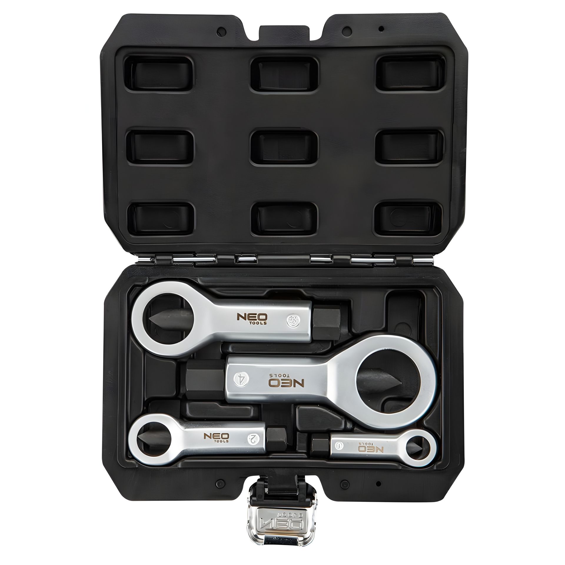 Набір гайколомів, 4 шт. У наборі: отвір 9 - 12 мм/ключ 12 мм отвір 12 - 16 мм/ключ 14 мм отвір 16 - 22 мм/ключ 19 мм отвір 22 - 27 мм/ключ 21 мм