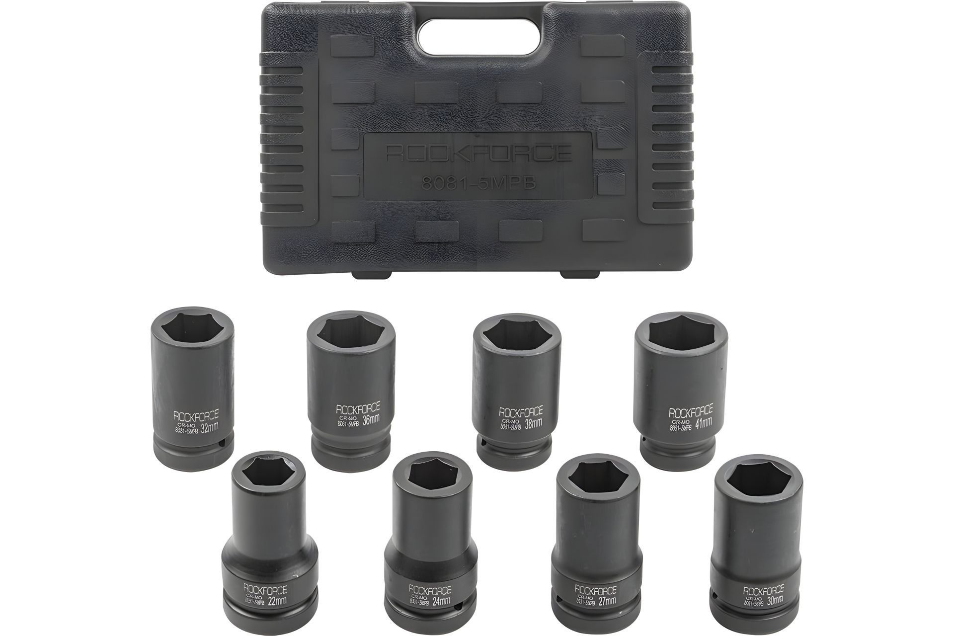 Набір глибоких ударних головок 8 ін. 1" (6-гран) (22,24,27,30,32,36,38,41) в кейсі ROCKFORCE RF-8081-5MPB