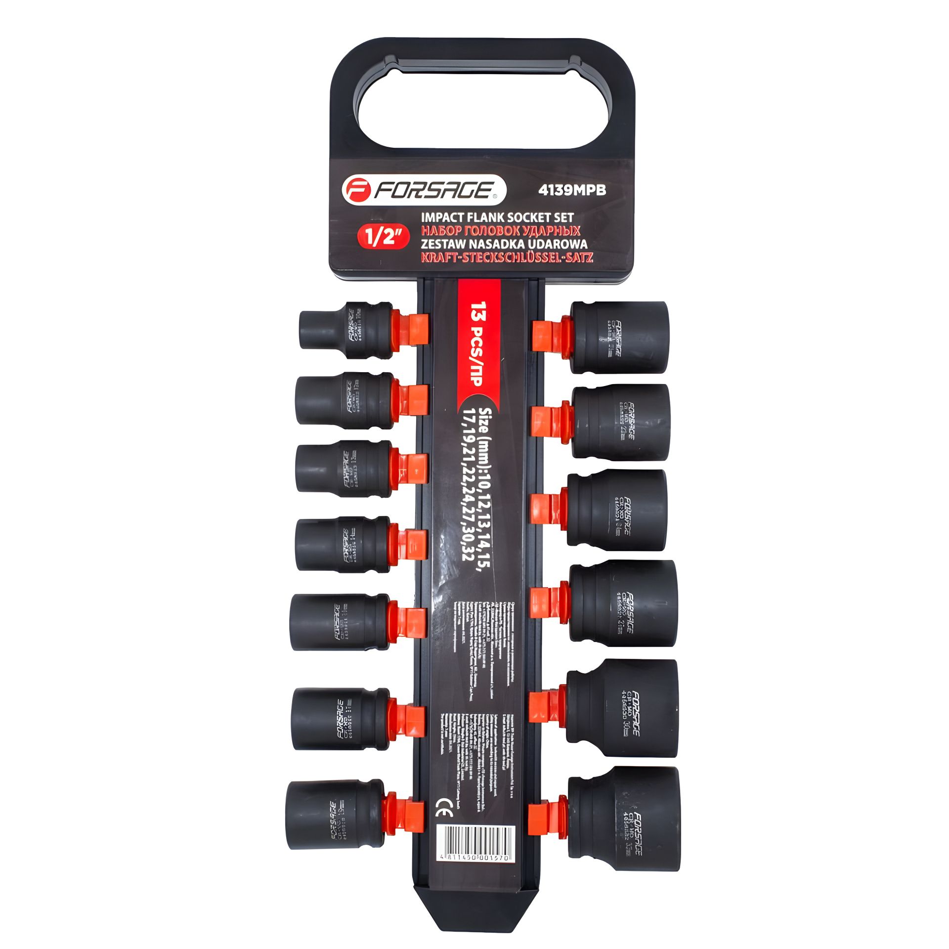 Набір ударних головок 13пр., 1/2" (10, 12-15, 17, 19, 21, 22, 24, 27, 30, 32 мм), пластиковий тримач FORSAGE ROCKFORCE F-4139MPB
