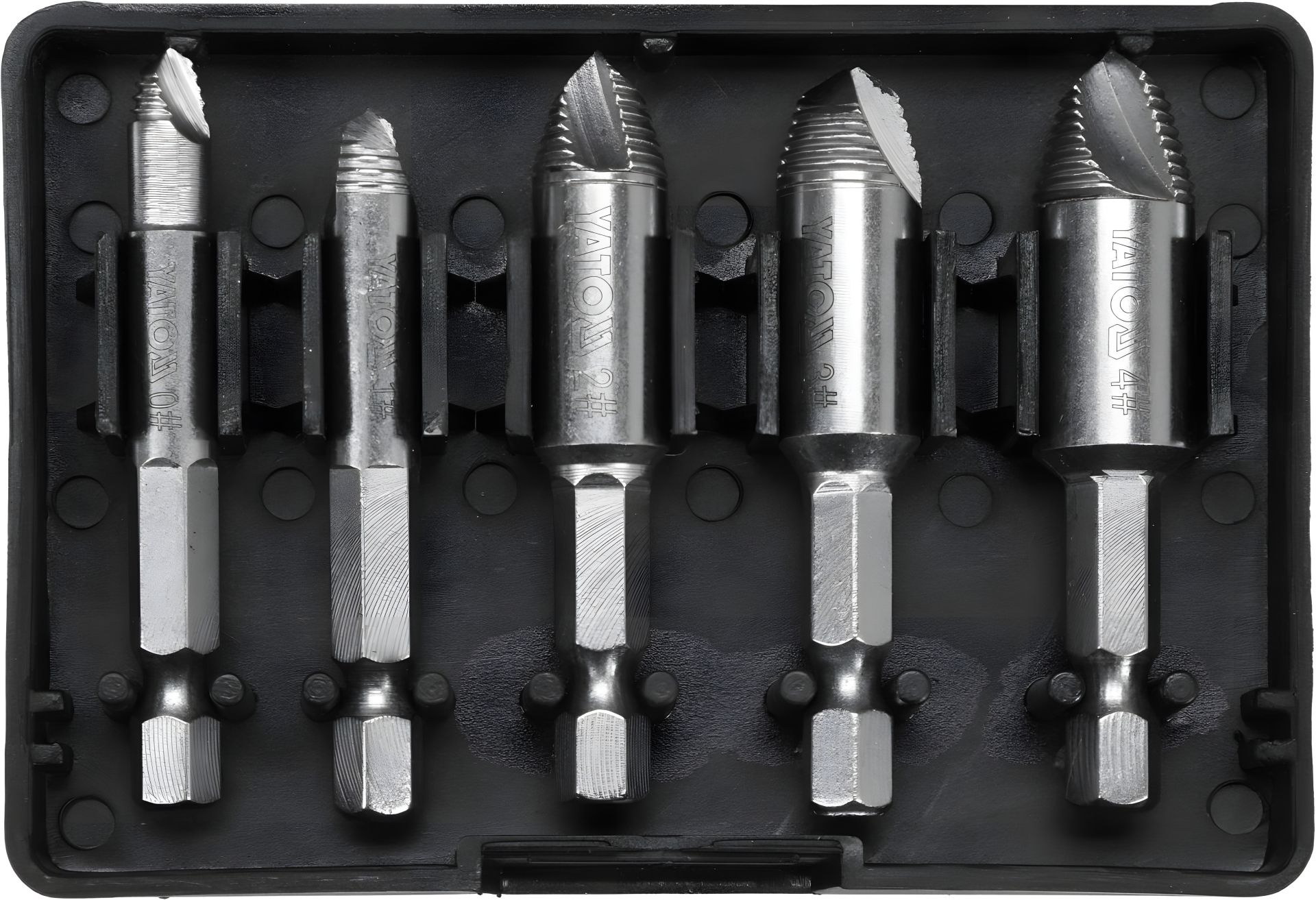 Набір гвинтових екстракторів для зламаних гвинтів HEX - 1/4" HSS 4241, 5 шт Yato YT-06035