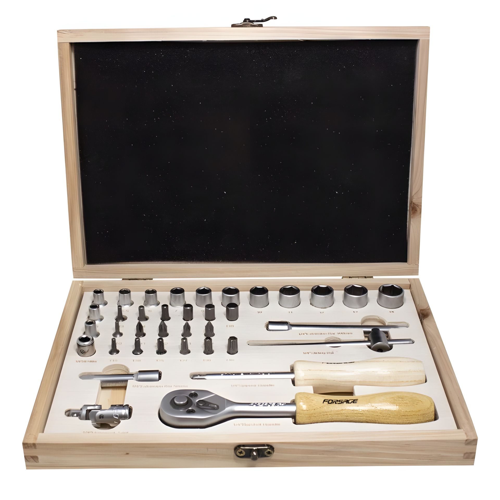 Набір інструментів 38 предметів, 1/4" (6гр.) FORSAGE F-2382-5 у дерев'яному футлярі