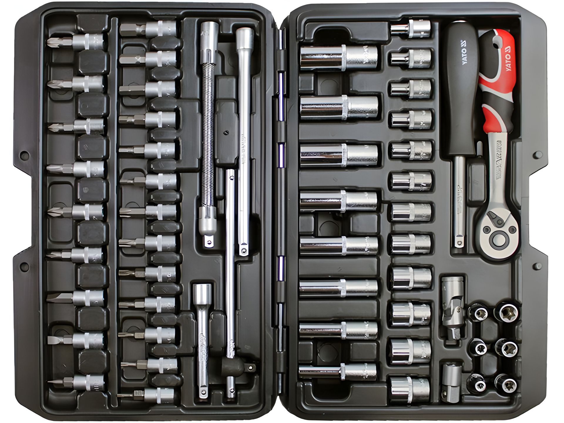Пропонуємо до Вашої уваги професійний набір інструментів YATO YT-14501, що складається з 56 предметів. Комплект орієнтований працювати з різьбовими з'єднаннями різних типів. Збалансована комплектація дозволяє позиціонувати його як універсальний набір інструменту для дому, так і автомобільний набір інструменту першої необхідності. Адже практично неможливо уявити завдання у побуті або по дрібному ремонту авто з яким би він не впорався. Для СТО автомобілів та механічних виробництв цей комплект швидше буде додатковим або спеціалізованим для конкретного технічного посту. Виробник Yato – входить до складу корпорації TOYA SA, яка є провідним виробником електричного та ручного інструменту. Крім Yato, концерну належать такі відомі компанії, як Pоwer Up, FLО, Vоrel та ін. Представництва корпорації в Німеччині, Іспанії та Китаї забезпечують випуск понад 6500 найменувань різноманітного інструменту та спеціалізованого обладнання. Технології та характеристики: матеріал: інструментальна сталь твердість: 45-47 одиниць (по HRC) обробка: термообробка, холодне кування, загартування, полірування покриття: хром-нікелеве Посадка та конфігурація елементів: посадковий квадрат 1/4" (6.35 мм) шестигранний динамічний профіль головоккругова накатка (органайзер) з якісного поліпропілену. Стандартні головки (висота 25 мм) 1/4" у розмірах: 4 -13 мм Подовжені головки (висота 50 мм) 1/4" у розмірах: 6 - 13 мм Шлицеві насадки 1/4": 4, 5.5 і 6. ммПодовжувач 1/4", L=150 ммНасадки TORX 1/4": T8, T10, T15, T20, T25, T30, T40Насадки PH 1/4": PH1 - PH3Насадки PZ 1/4": PZ1 - PZ3Насадки HEX 1 E4 - E10 Подовжувач гнучкий 1/4", L=150 ммВороток з плаваючою ручкою 1/4", L=150 мм 1/4", L=155 мм (вороток з тріскачкою) - заслуговує на особливу увагу. Мінімальний робочий хід коміра складає всього п'ять градусів, що у поєднанні зі зручним та надійним механізмом реверсу істотно полегшать роботу в умовах обмеженого простору. Набір інструменту 56 одиниць YT-14501 від YATO належить до середньої цінової категорії, тому доступна широкому колу споживачів. Це також незамінний набір інструменту для автолюбителів в силу малих габаритів та зручної упаковки. Детальніше з набором інструментів 56 од. YATO YT-14501 можна ознайомитись у відео огляді: Дивіться безліч корисних та цікавих відео оглядів найрізноманітнішого інструменту та обладнання на нашому каналі у YouTube - Megapolis інструмент