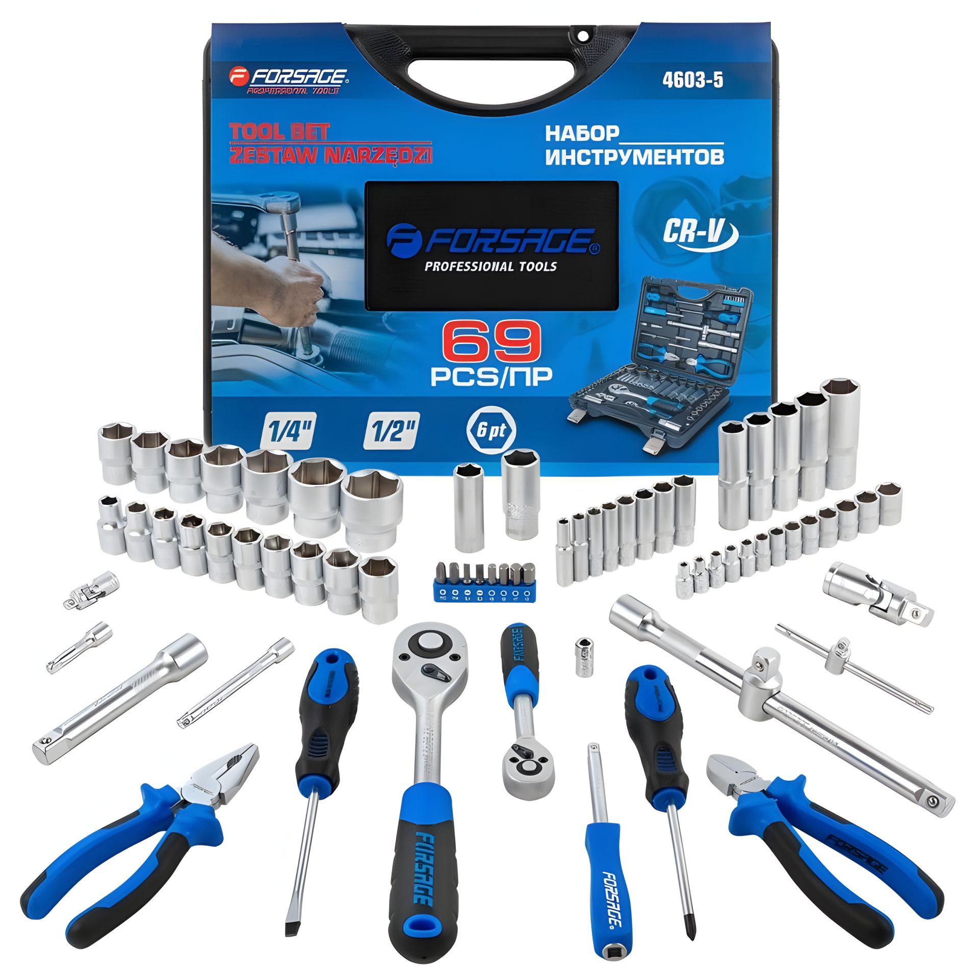Набір інструментів 69 предм., 1/4", 1/2", (6гр.) (4-32мм) FORSAGE (F-4603-5)