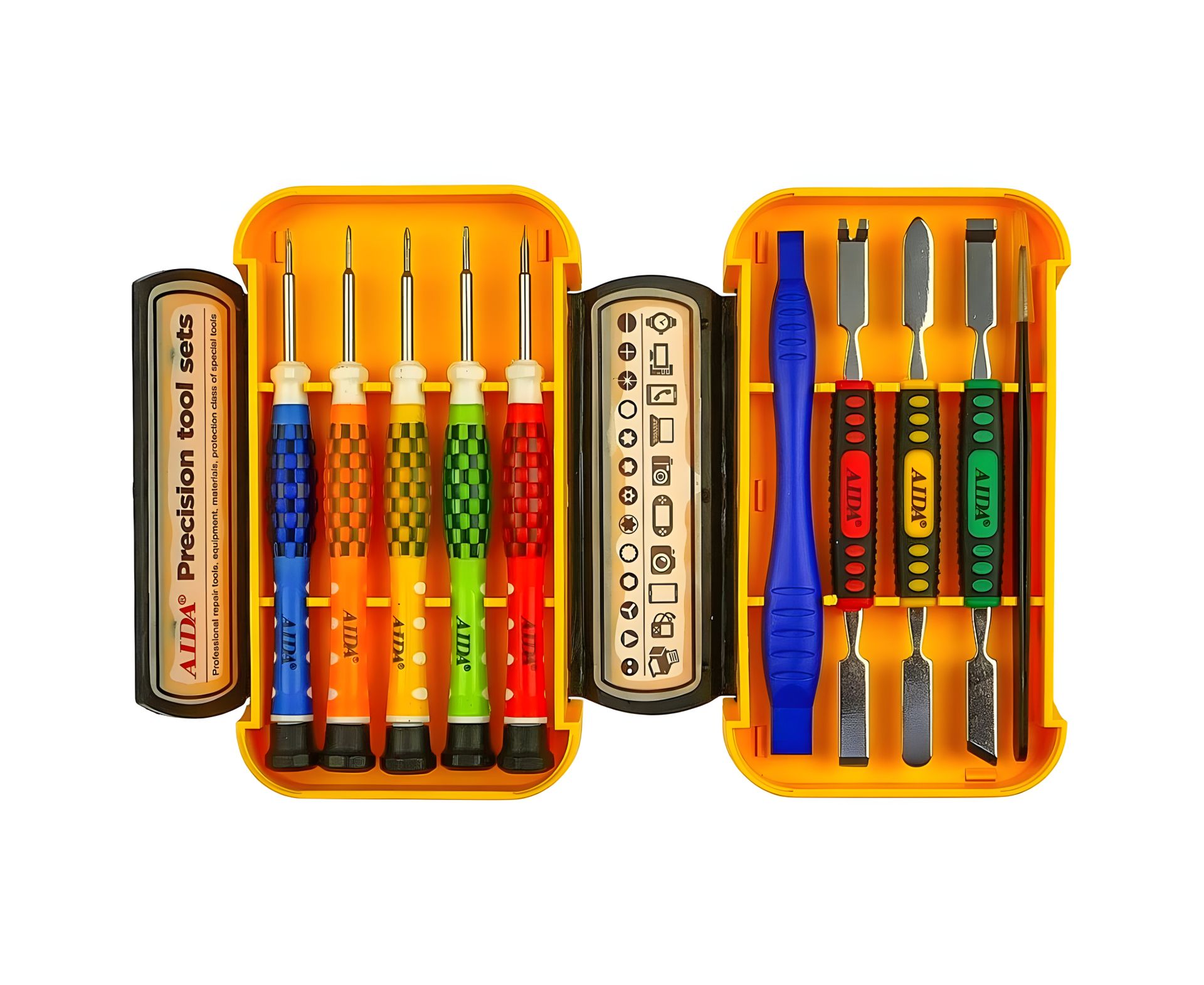 Набір інструментів AIDA AD-3010 – це універсальний комплект, спеціально призначений для ремонту та обслуговування різноманітних електронних пристроїв. З цим набором ви зможете легко працювати з мобільними телефонами, планшетами, ноутбуками, а також з іншою дрібною електронікою, забезпечуючи точність та акуратність при роботі з дрібними деталями.