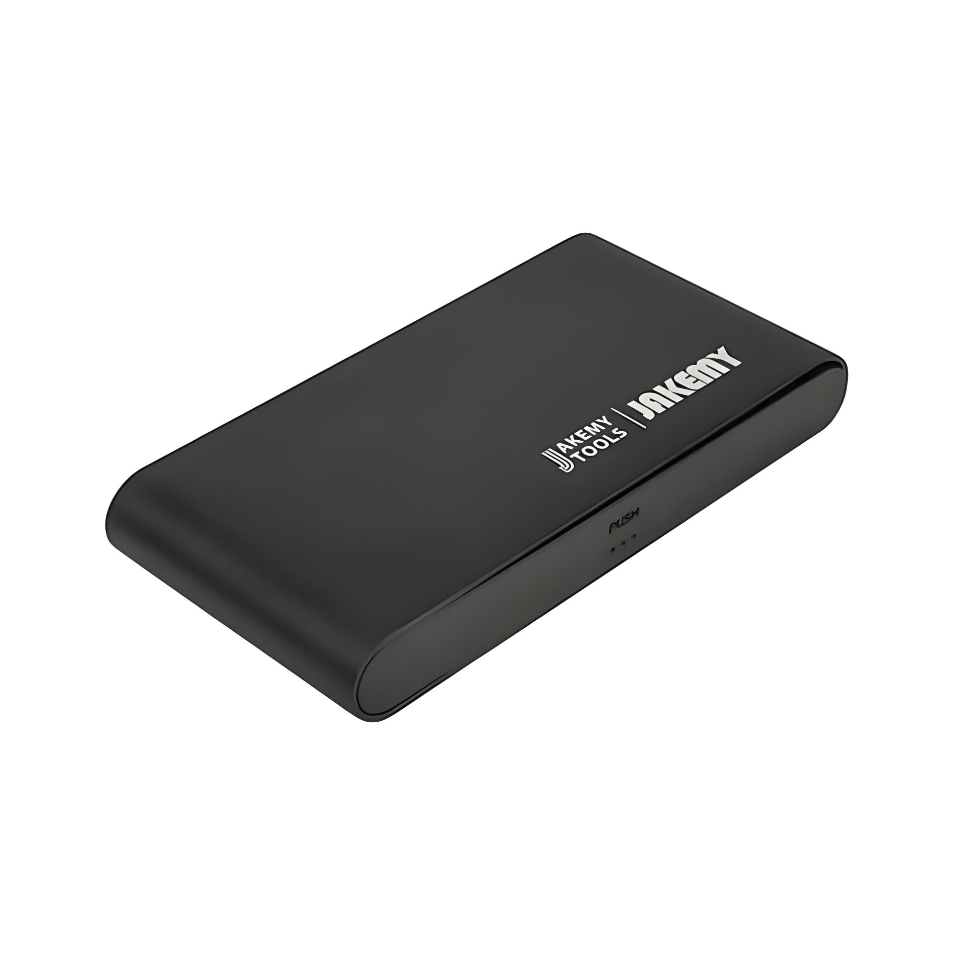 - Має стильний дизайн з матовим покриттям і лазерним гравіюванням логотипу Jakemy, а також зручним відкриванням однією рукою.