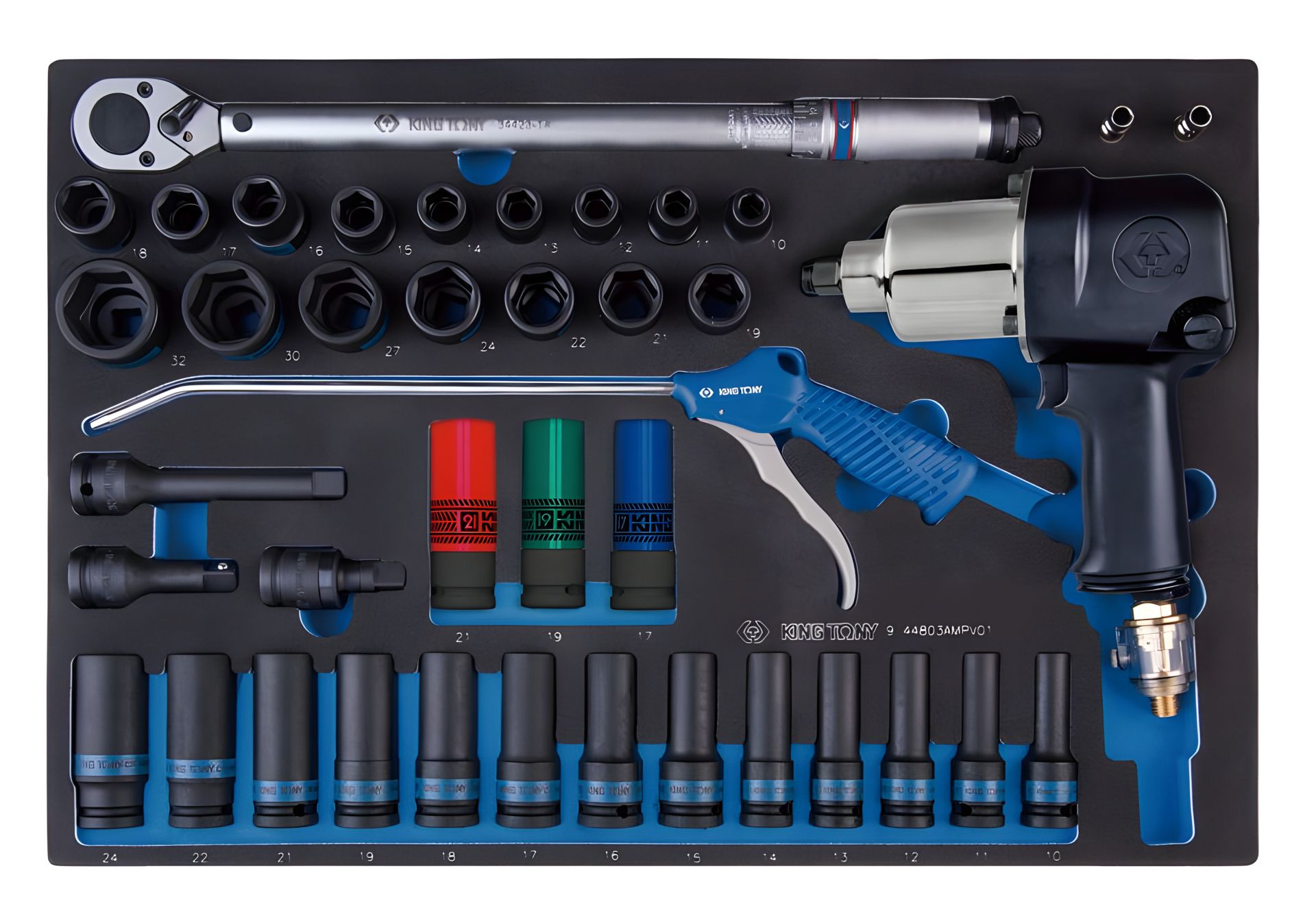 Набір інструментів комбінований 41 предмет, Головки, Гайковерт 33411-050, тріскачка KING TONY (9-44803AMPV01)