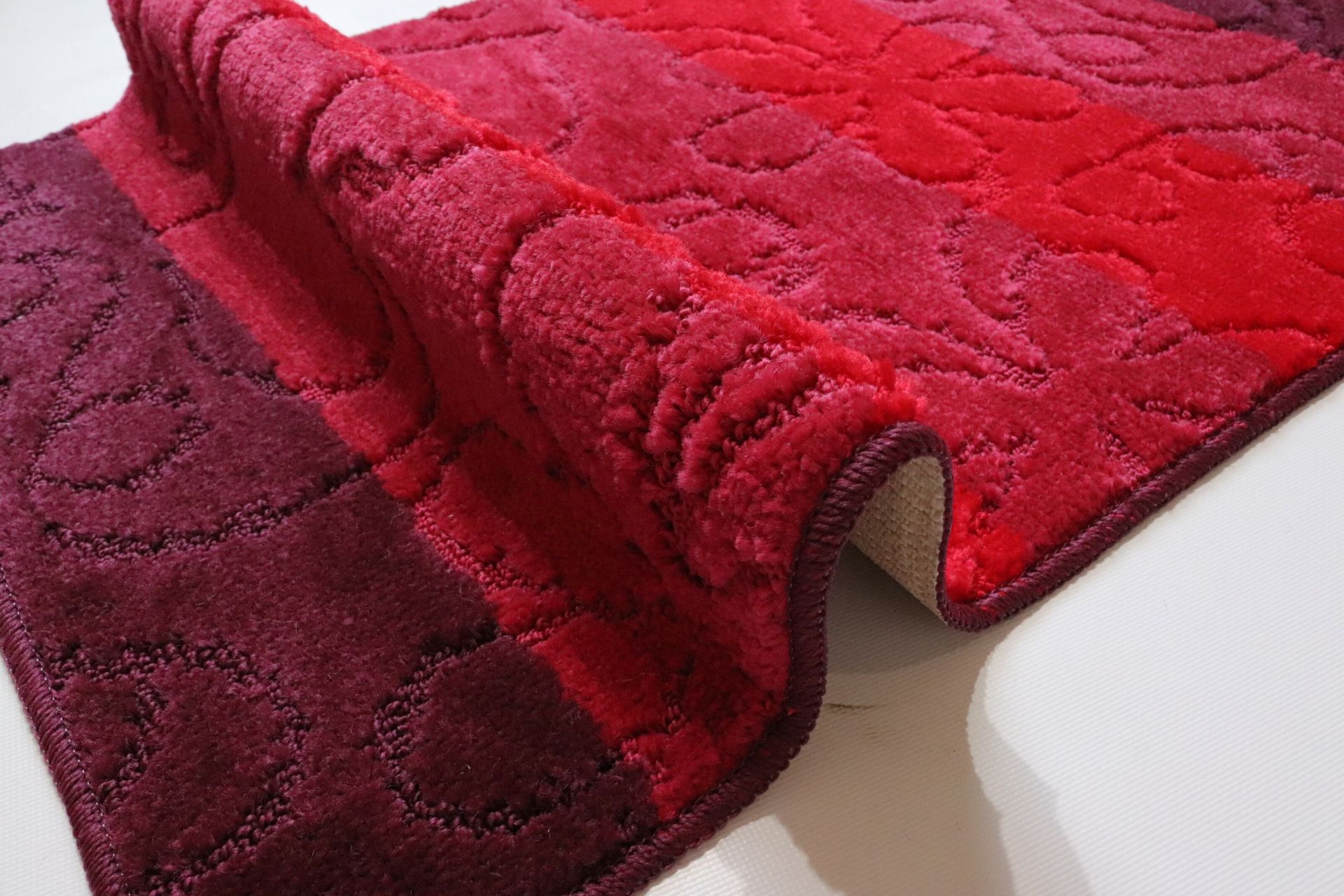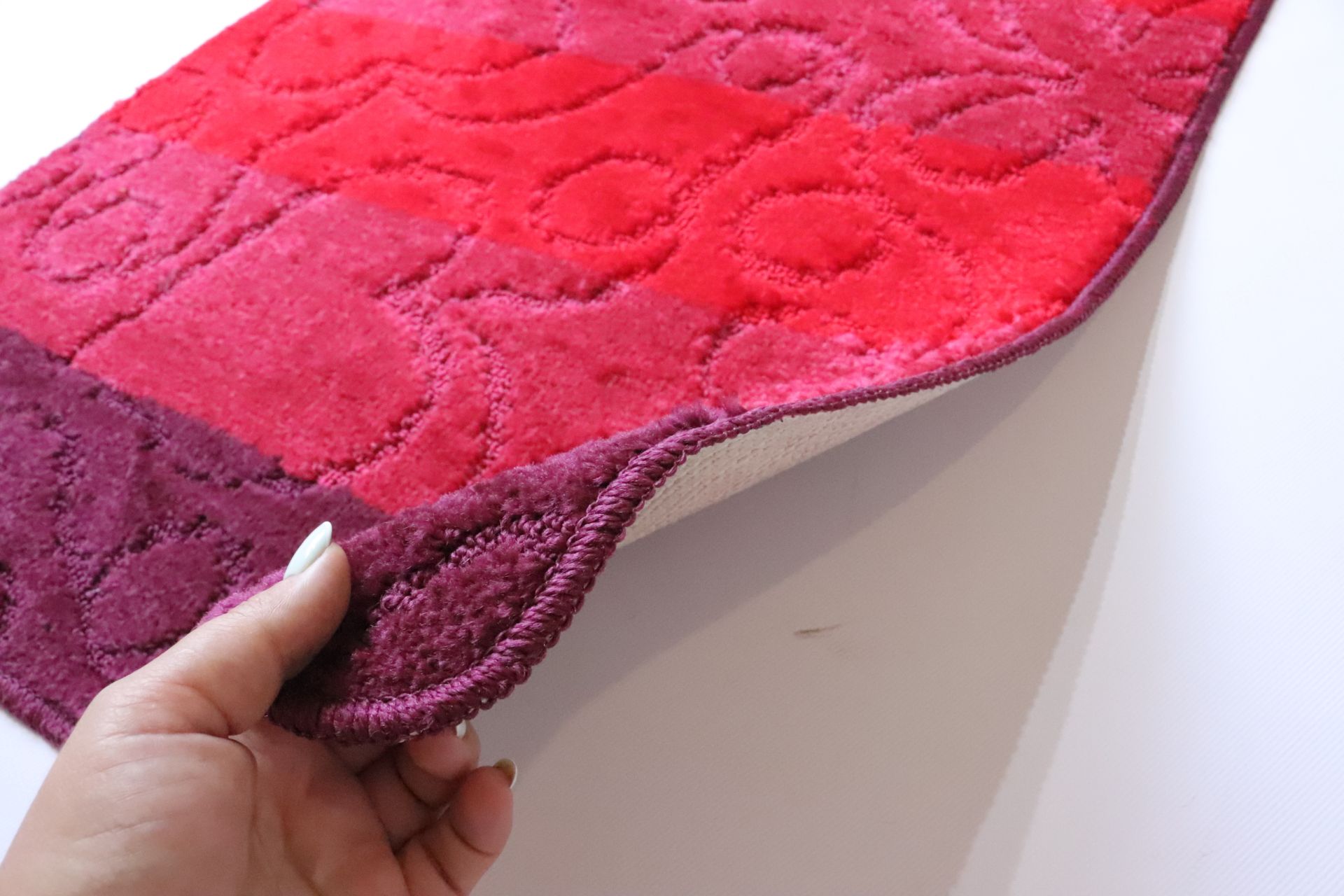 Набір килимів у ванній та туалет Vonaldy має незвичайний сучасний дизайн. Високоякісні та вдосконалені технології дозволяють вибирати килими в будь -якому інтер’єрі. Набір складається з двох килимів, великих прямокутних і маленьких прямокутних з декольте для туалету. Основа - латекс, верхній - поліпропілен, стійкий до зносу та швидко висихає матеріал. Краї обробляються оллоком. Vonaldy - турецький бренд, який здобув передові позиції в текстильному продукті. У виробництві ванних кімнат використовуються лише екологічно чисті матеріали.