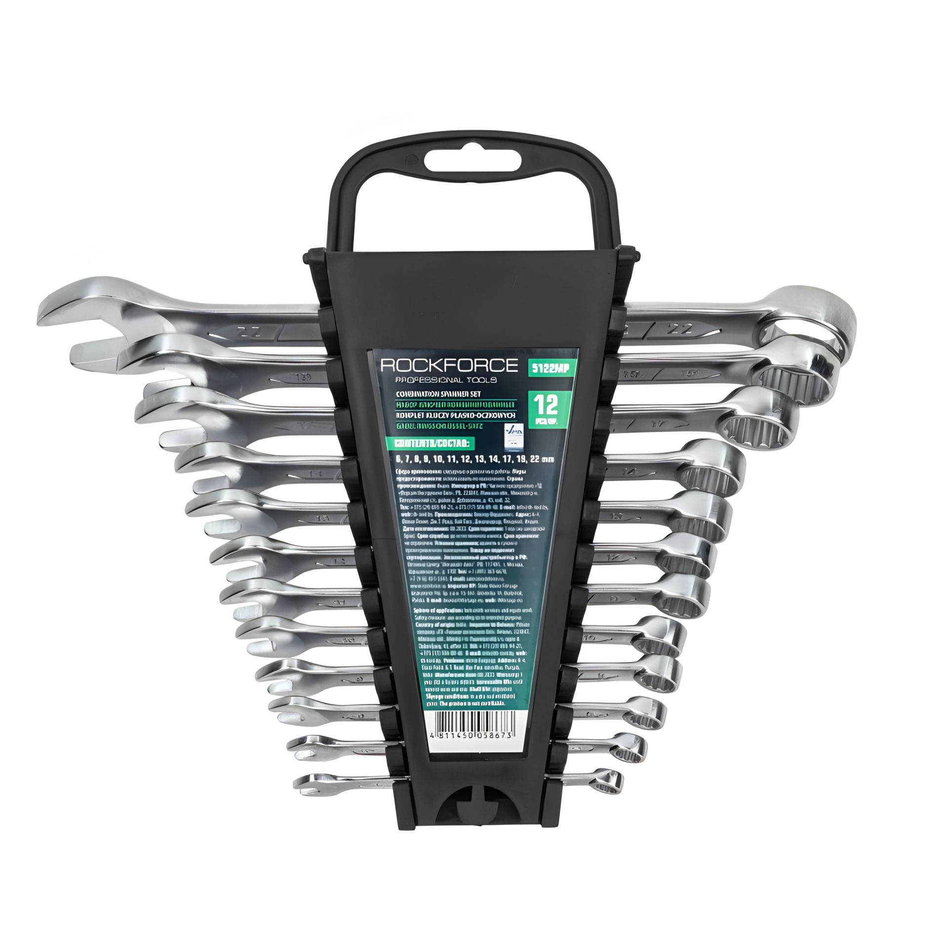 Комбінованих ключів набір 12 предметів у пластиковому тримачі (6-14, 17,19, 22мм) ROCKFORCE RF-5122MP
