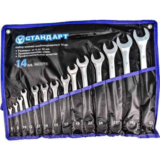 Набір комбінованих ключів 14од. (6,8,10,12-15,17,19,22,24,27,30,32), STANDART NKK14STA-S