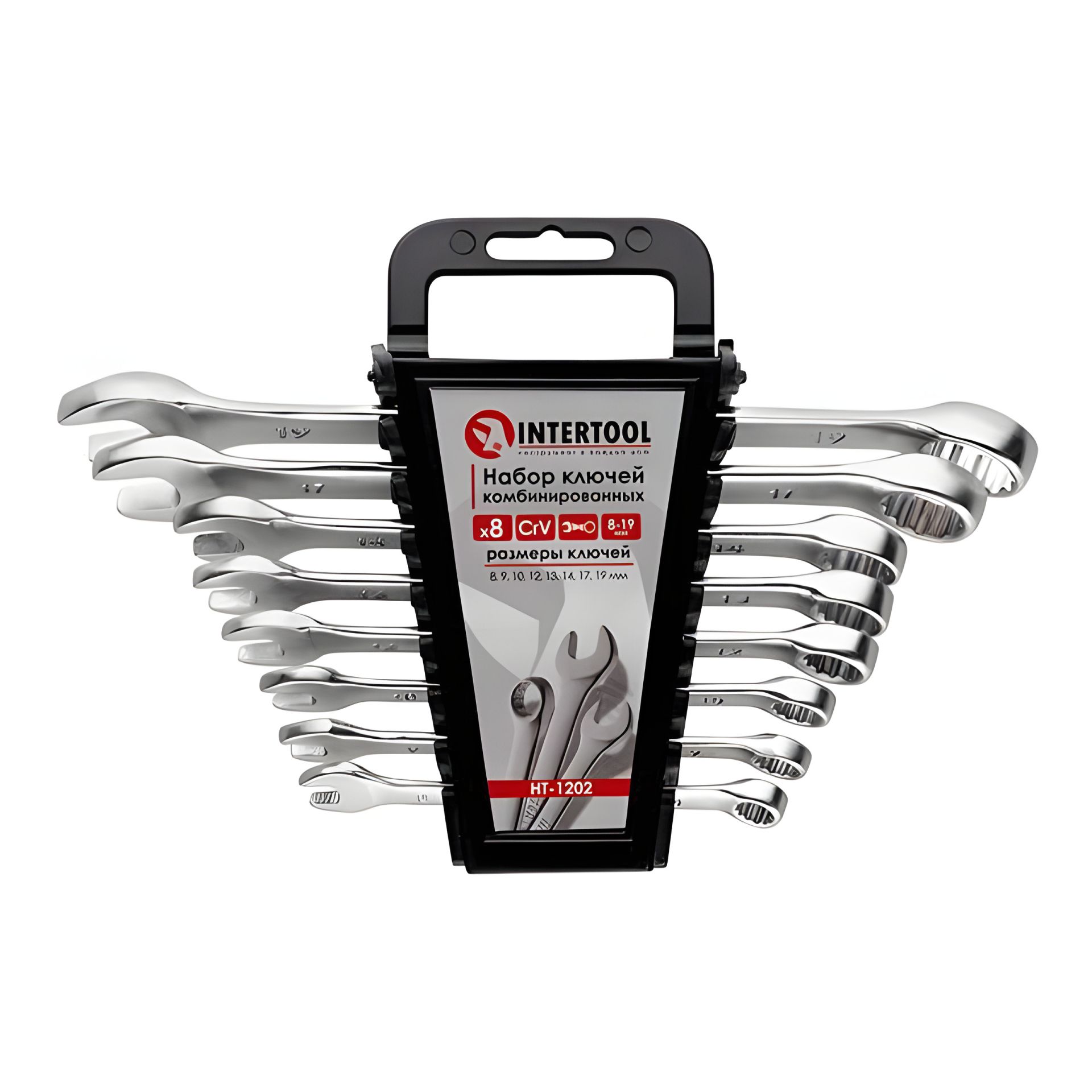 Набір комбінованих ключів, 8 шт., 8-19 мм, Cr-V INTERTOOL HT-1202