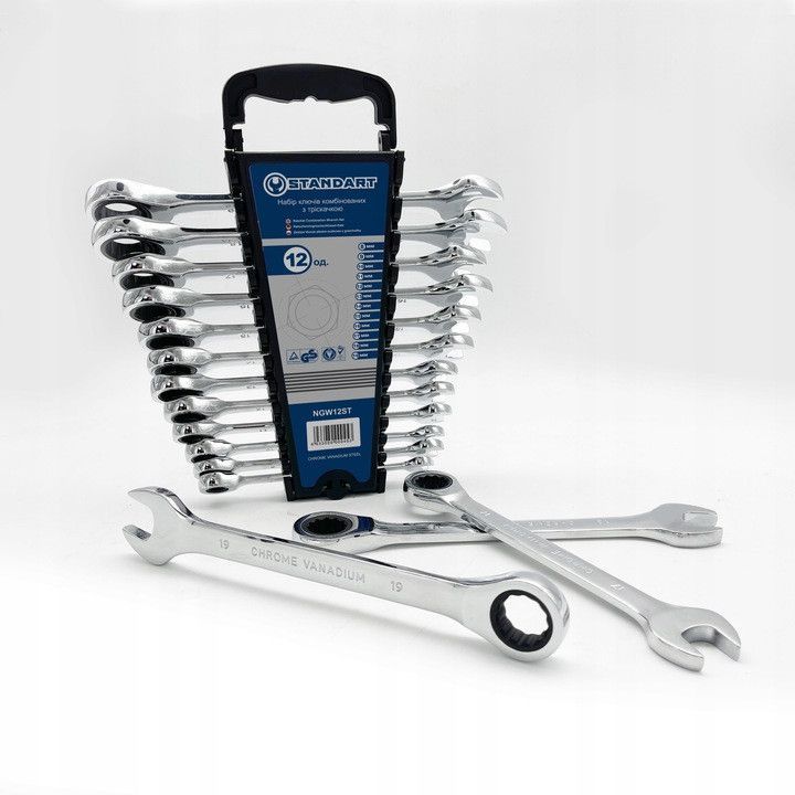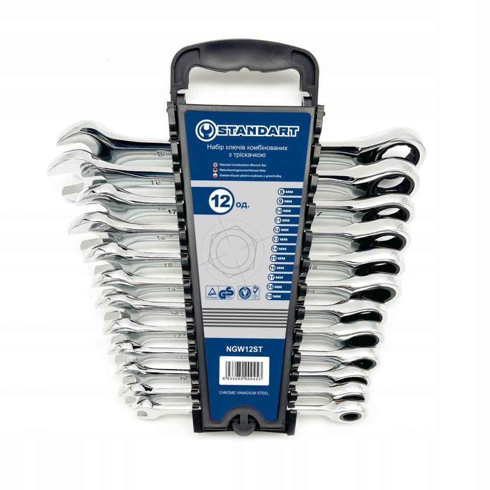 Набір ключів комбінованих з тріскачкою 8-19мм 12од. на холдері STANDART NGW12ST